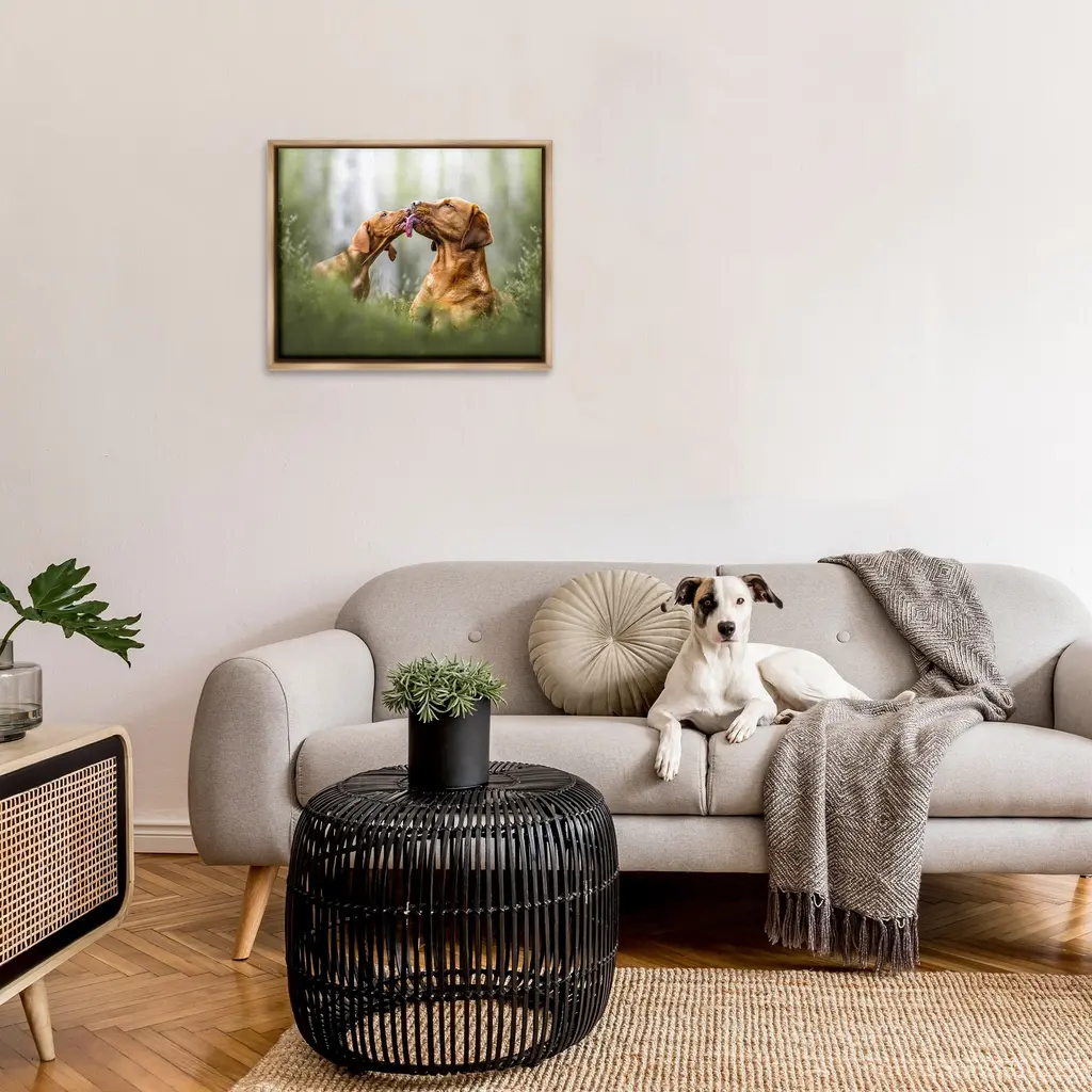Elevate your home or office to the next level with Stupell Framed Floating Canvas Wall Art. Our premium hand-stretched canvas is mounted securely into a sturdy lightweight frame. The museum-style gap between the wrapped canvas and the box frame gives the illusion of floating artwork. Stupell Wall Art is made in the USA.Features: Dimensions: 21 x 1.7 x 17 Frame, 20 x 1.5 x 16 Canvas ArtFloating Frame Canvas Products are available in sizes 21"x17" and 31"x25". All Floating Frame Canvas Products have a 1.7" Depth.Wall Art is Ready to Hang with Hardware Free Hanging. No Installation required. For Easy Set Up Lean or Layer Artwork on Shelf or Against Wall. Artwork is Permently Fixed into the Frame.Our elevated 1.7" Thick Floating Frame is the perfect complement to our canvas style Wall Art. We use only the highest quality inks in house with industry leading printing solutions. Canvas is hand stretched over a durable wood foundation and then mounted securly into a Modern Box Frame. Made in the USA.Artwork Relates To: Animal, Canine, Dog, Mammal, Pet, Hound, Puppy, Labrador Retriever, SnoutDesign by Natalie Grosse