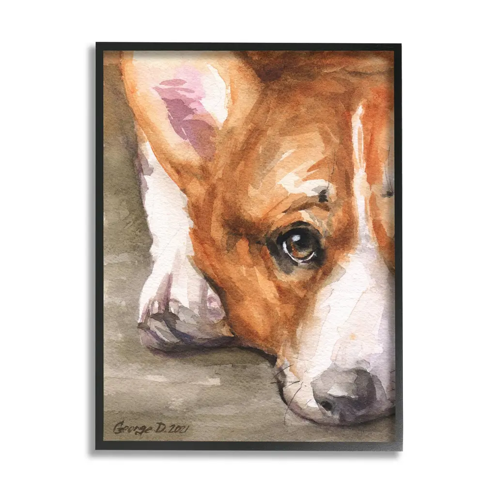 Stupell Pleasant Corgi Puppy Dog Gazing Lying Down Framed Wall Art, Design By George Dyachenko - Tan - 16 X 20 - Grey