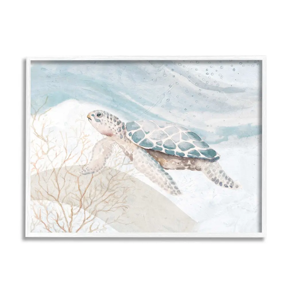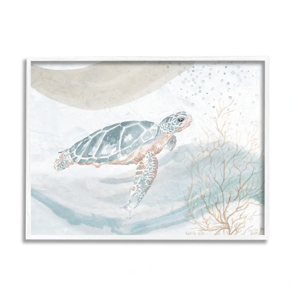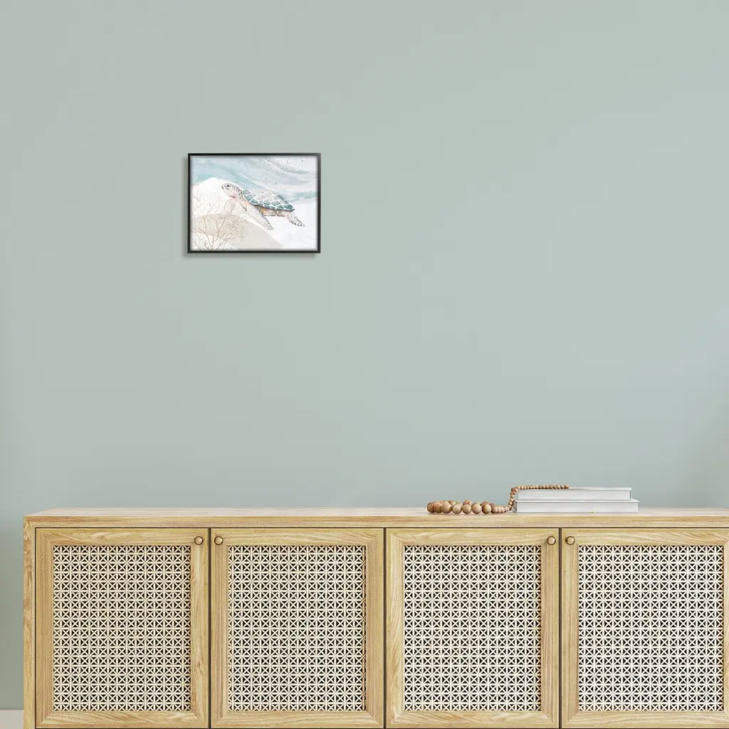 Our Framed Giclee Wall Art adds a touch of class to any space in your home or office. Frames are available in three alluring styles: black, gray farmhouse and white. Our textured artwork will add more depth and dimension to any space. Each piece is mounted with a 1.5 inch thick wood grain frame that is ready to hang! Looking for a statement piece? We have oversized artwork available.Features: Wall Art is Ready to Hang - No Installation or Hardware Needed. For Easy Set Up Lean or Layer Artwork on Shelf or Against Wall.Our giclee prints are carefully mounted on a durable MDF backing, and then perfectly finished in a 1.5 inch thick woodgrain frame. Mounted frame colors include black, gray farmhouse and white. Made In USA.Artwork Relates To: Turtle; Sea Life; Animal; Reptile; Sea Turtle; Tortoise, Water, BotanicalDesign by Patricia Pinto