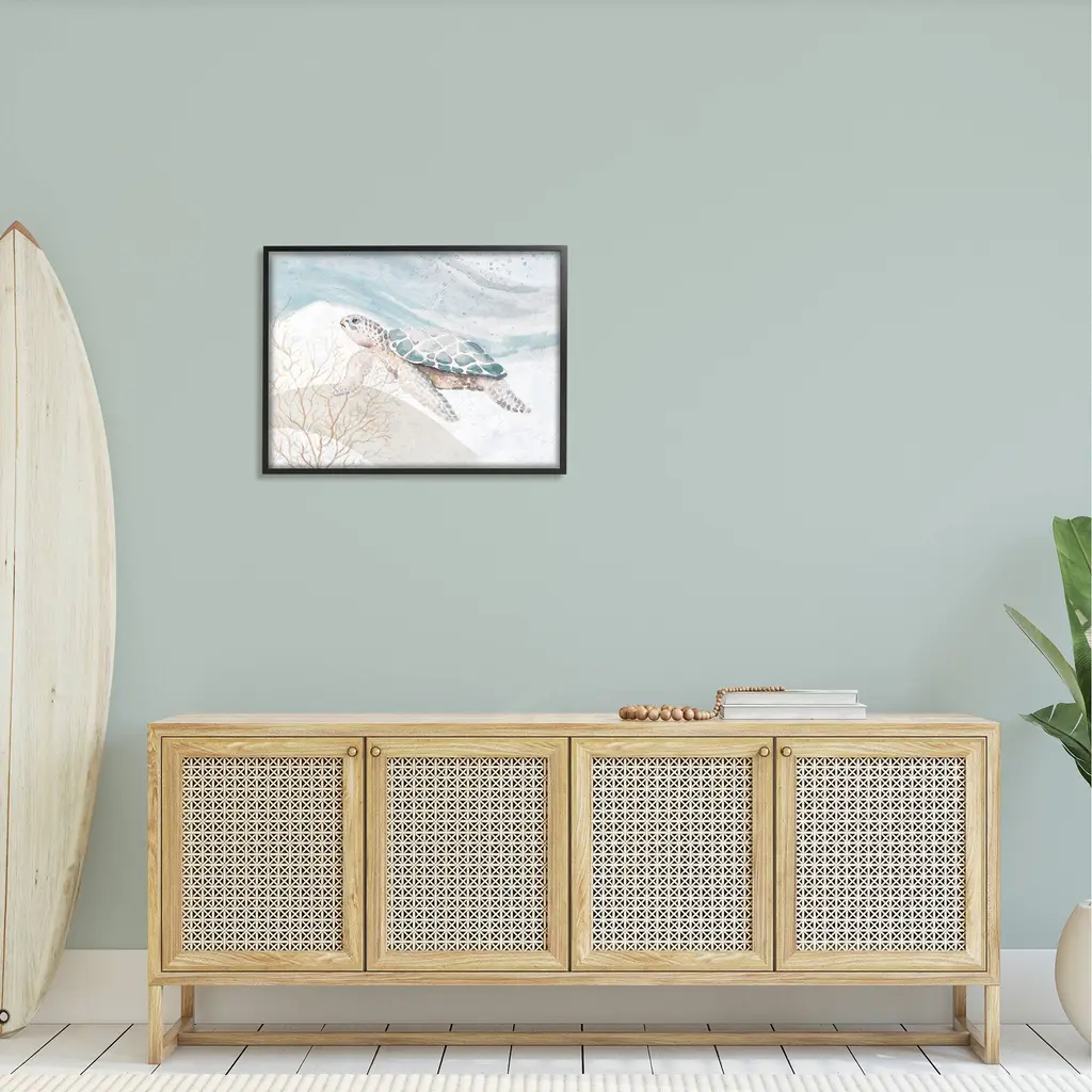 Our Framed Giclee Wall Art adds a touch of class to any space in your home or office. Frames are available in three alluring styles: black, gray farmhouse and white. Our textured artwork will add more depth and dimension to any space. Each piece is mounted with a 1.5 inch thick wood grain frame that is ready to hang! Looking for a statement piece? We have oversized artwork available.Features: Wall Art is Ready to Hang - No Installation or Hardware Needed. For Easy Set Up Lean or Layer Artwork on Shelf or Against Wall.Our giclee prints are carefully mounted on a durable MDF backing, and then perfectly finished in a 1.5 inch thick woodgrain frame. Mounted frame colors include black, gray farmhouse and white. Made In USA.Artwork Relates To: Turtle; Sea Life; Animal; Reptile; Sea Turtle; Tortoise, Water, BotanicalDesign by Patricia Pinto