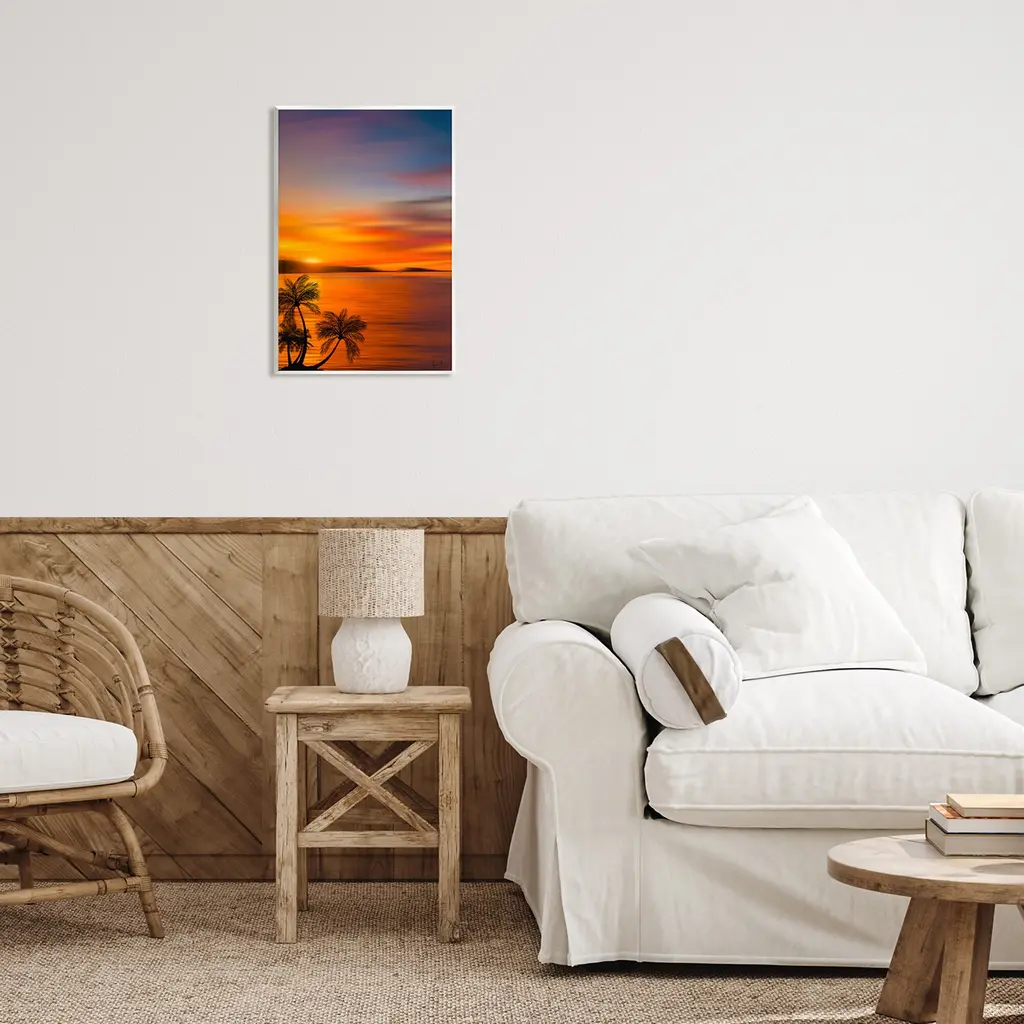 Our wall plaques start as high-quality lithograph prints mounted on durable 0.5-inch thick MDF wood. Each piece is hand finished and comes with a fresh layer of white foil on the sides to give it a crisp, clean look. Plaques arrive ready to hang without installation and come with removable plastic corners to keep them from damage in transit. Wall Art is made in the USA.Features: Dimensions: 10 x 0.5 x 15 InchesWall Plaque Sizes Include Standard: 10 x 0.5 x 15 Oversized: 13 x 0.5 x 19Wall Art is Ready to Hang with Hardware Free Hanging. No installation required. For Easy Set Up Lean or Layer Artwork on Shelf or Against Wall.All of our wall plaques start off as high quality lithograph prints that are then mounted on durable 0.5 inch thick MDF wood. Each piece is hand finished and comes with a fresh layer of foil on the sides to give it a crisp clean look. Made In USA.Artwork Relates To: Sunset, Sunlight, Summer, Scenery, Sunrise, Tropical, Water, Beach, Coast, Shoreline, Horizon, Landscape, Palm Tree, SilhouetteDesign by Renel Peters