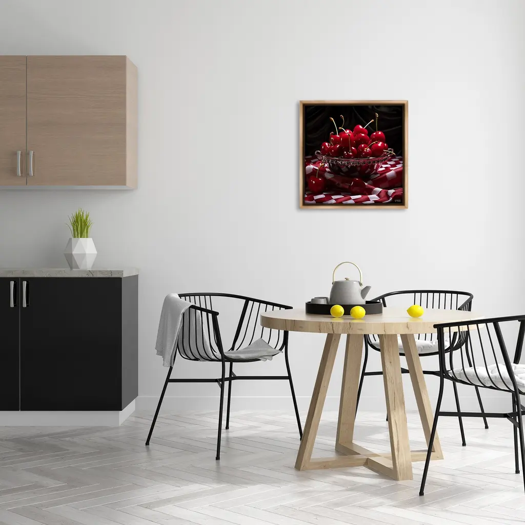 Elevate your home or office to the next level with Stupell Framed Floating Canvas Wall Art. Our premium hand-stretched canvas is mounted securely into a sturdy lightweight frame. The museum-style gap between the wrapped canvas and the box frame gives the illusion of floating artwork. Stupell Wall Art is made in the USA.Features: Dimensions: 18 x 1.7 x 18 Frame, 17 x 1.5 x 17 Canvas ArtFloating Frame Canvas Products are available in sizes 18"x18" and 25"x25". All Floating Frame Canvas Products have a 1.7" Depth.Wall Art is Ready to Hang with Hardware Free Hanging. No Installation required. For Easy Set Up Lean or Layer Artwork on Shelf or Against Wall. Artwork is Permently Fixed into the Frame.Our elevated 1.7" Thick Floating Frame is the perfect complement to our canvas style Wall Art. We use only the highest quality inks in house with industry leading printing solutions. Canvas is hand stretched over a durable wood foundation and then mounted securly into a Modern Box Frame. Made in the USA.Artwork Relates To: Food, Fruit, Plant, Produce, Cherry, Plaid, Checkered, Pattern, TableclothDesign by RB