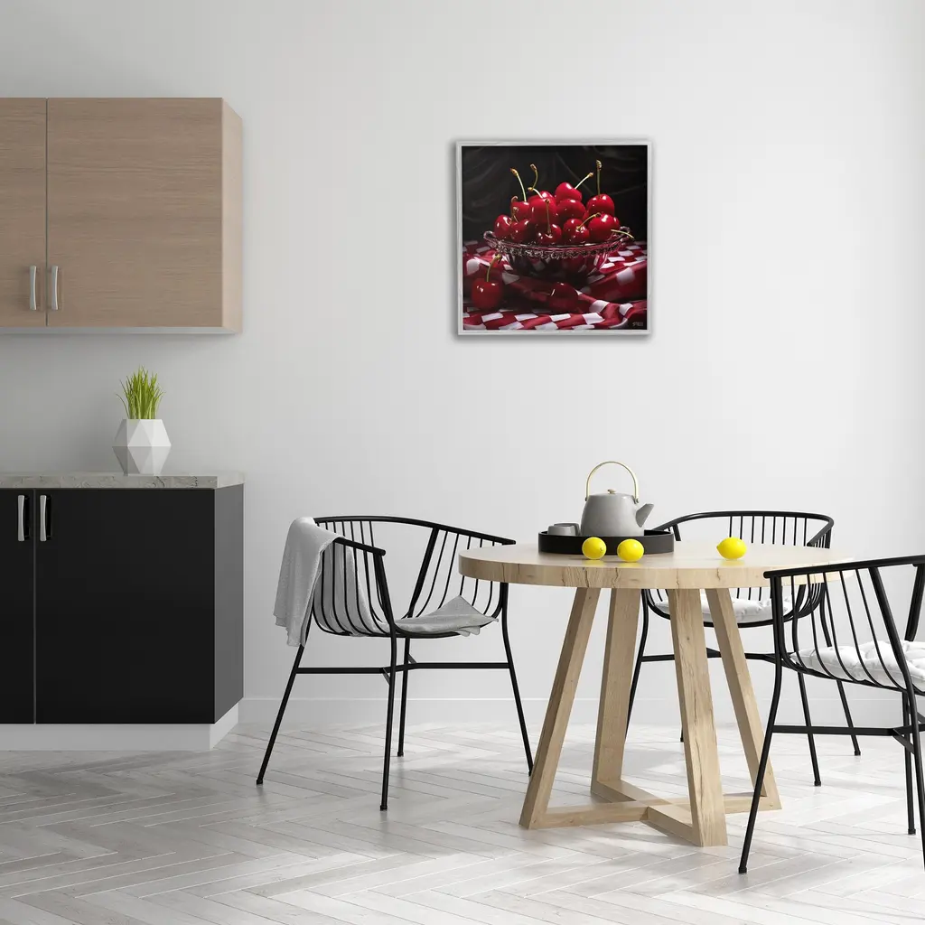 Add dimension to any room with our textured Framed Giclee Artwork. Our framed artwork is securely mounted into a 1.5-inch thick wood grain frame and ready to hang. Frames are available in three alluring styles: black, gray farmhouse and white. In addition, you should check out our oversized options if you want a statement piece. Stupell Wall Art is made in the USA.Features: Dimensions: 12 x 1.5 x 12 FramedFramed Giclee Product Sizes Include 12"x12", 17"x17", and 24"x24". Framed Giclee Products have a 1.5" Depth. Wall Art is Ready to Hang with Hardware Free Hanging. No installation required. For Easy Set Up Lean or Layer Artwork on Shelf or Against Wall.Our giclée prints are carefully mounted on a durable MDF backing, and then perfectly finished in a 1.5 inch thick woodgrain frame. Mounted frame colors include black, gray farmhouse and white. Made In USA.Artwork Relates To: Food, Fruit, Plant, Produce, Cherry, Plaid, Checkered, Pattern, TableclothDesign by RB