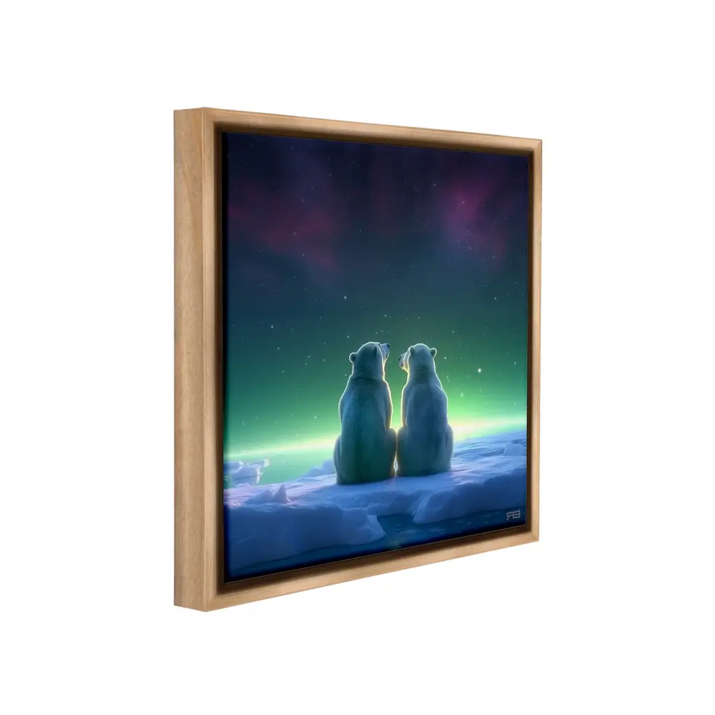 Elevate your home or office to the next level with Stupell Framed Floating Canvas Wall Art. Our premium hand-stretched canvas is mounted securely into a sturdy lightweight frame. The museum-style gap between the wrapped canvas and the box frame gives the illusion of floating artwork. Stupell Wall Art is made in the USA.Features: Dimensions: 18 x 1.7 x 18 Frame, 17 x 1.5 x 17 Canvas ArtFloating Frame Canvas Products are available in sizes 18"x18" and 25"x25". All Floating Frame Canvas Products have a 1.7" Depth.Wall Art is Ready to Hang with Hardware Free Hanging. No Installation required. For Easy Set Up Lean or Layer Artwork on Shelf or Against Wall. Artwork is Permently Fixed into the Frame.Our elevated 1.7" Thick Floating Frame is the perfect complement to our canvas style Wall Art. We use only the highest quality inks in house with industry leading printing solutions. Canvas is hand stretched over a durable wood foundation and then mounted securly into a Modern Box Frame. Made in the USA.Artwork Relates To: Animal, Bear, Mammal, Wildlife, Polar Bear, Nature, Scenery, Night, Aurora Borealis, Northern Lights, Snow, Ice, WinterDesign by RB