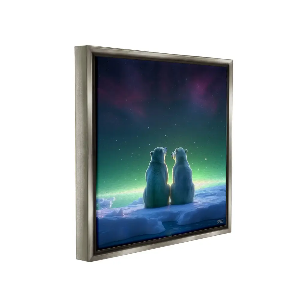 Elevate your home or office to the next level with Stupell Framed Floating Canvas Wall Art. Our premium hand-stretched canvas is mounted securely into a sturdy lightweight frame. The museum-style gap between the wrapped canvas and the box frame gives the illusion of floating artwork. Stupell Wall Art is made in the USA.Features: Dimensions: 18 x 1.7 x 18 Frame, 17 x 1.5 x 17 Canvas ArtFloating Frame Canvas Products are available in sizes 18"x18" and 25"x25". All Floating Frame Canvas Products have a 1.7" Depth.Wall Art is Ready to Hang with Hardware Free Hanging. No Installation required. For Easy Set Up Lean or Layer Artwork on Shelf or Against Wall. Artwork is Permently Fixed into the Frame.Our elevated 1.7" Thick Floating Frame is the perfect complement to our canvas style Wall Art. We use only the highest quality inks in house with industry leading printing solutions. Canvas is hand stretched over a durable wood foundation and then mounted securly into a Modern Box Frame. Made in the USA.Artwork Relates To: Animal, Bear, Mammal, Wildlife, Polar Bear, Nature, Scenery, Night, Aurora Borealis, Northern Lights, Snow, Ice, WinterDesign by RB