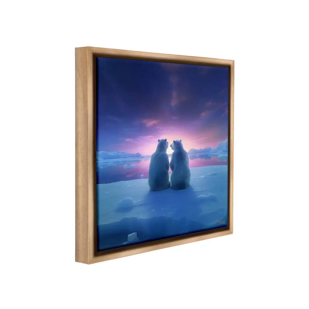 Elevate your home or office to the next level with Stupell Framed Floating Canvas Wall Art. Our premium hand-stretched canvas is mounted securely into a sturdy lightweight frame. The museum-style gap between the wrapped canvas and the box frame gives the illusion of floating artwork. Stupell Wall Art is made in the USA.Features: Dimensions: 18 x 1.7 x 18 Frame, 17 x 1.5 x 17 Canvas ArtFloating Frame Canvas Products are available in sizes 18"x18" and 25"x25". All Floating Frame Canvas Products have a 1.7" Depth.Wall Art is Ready to Hang with Hardware Free Hanging. No Installation required. For Easy Set Up Lean or Layer Artwork on Shelf or Against Wall. Artwork is Permently Fixed into the Frame.Our elevated 1.7" Thick Floating Frame is the perfect complement to our canvas style Wall Art. We use only the highest quality inks in house with industry leading printing solutions. Canvas is hand stretched over a durable wood foundation and then mounted securly into a Modern Box Frame. Made in the USA.Artwork Relates To: Animal, Bear, Mammal, Wildlife, Nature, Scenery, Polar Bear, Ice, Snow, Winter, Glacier, Sunset, SunriseDesign by RB