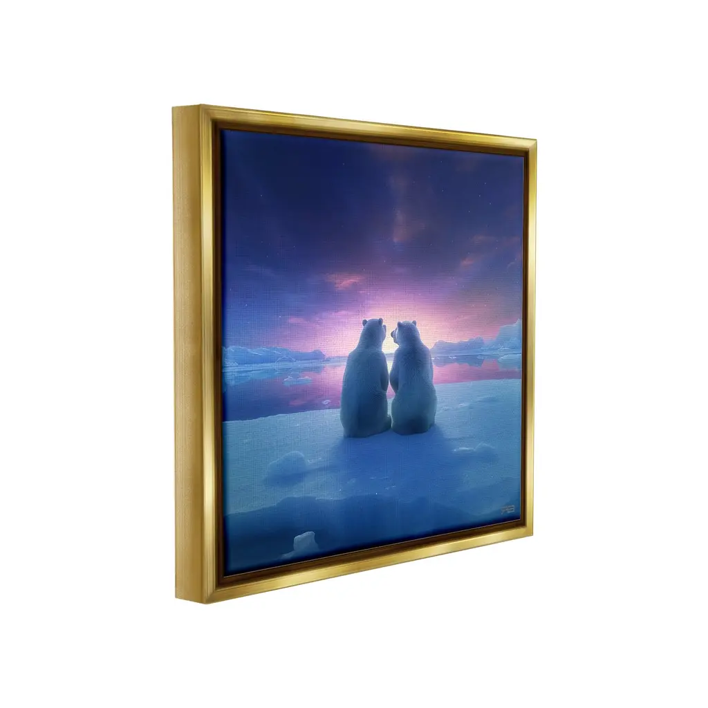 Stupell Polar Bears At Sunset Framed Floater Canvas Wall Art Design By Rb - 18 X 18 - Gold