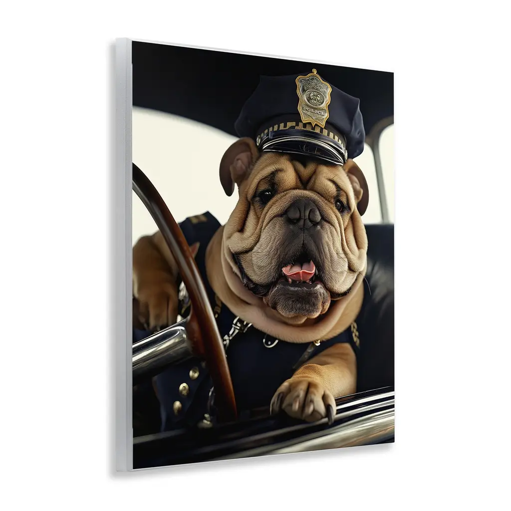 Our wall plaques start as high-quality lithograph prints mounted on durable 0.5-inch thick MDF wood. Each piece is hand finished and comes with a fresh layer of white foil on the sides to give it a crisp, clean look. Plaques arrive ready to hang without installation and come with removable plastic corners to keep them from damage in transit. Stupell Wall Art is made in the USA.Features: Dimensions: 11 x 0.5 x 14 InchesWall Art is Ready to Hang with Hardware Free Hanging. No installation required. For Easy Set Up Lean or Layer Artwork on Shelf or Against Wall.All of our wall plaques start off as high quality lithograph prints that are then mounted on durable 0.5 inch thick MDF wood. Each piece is hand finished and comes with a fresh layer of foil on the sides to give it a crisp clean look. Made In USA.Artwork Relates To: Animal, Bulldog, Canine, Dog, Mammal, Pet, Police, PolicemanDesign by Ray Heere