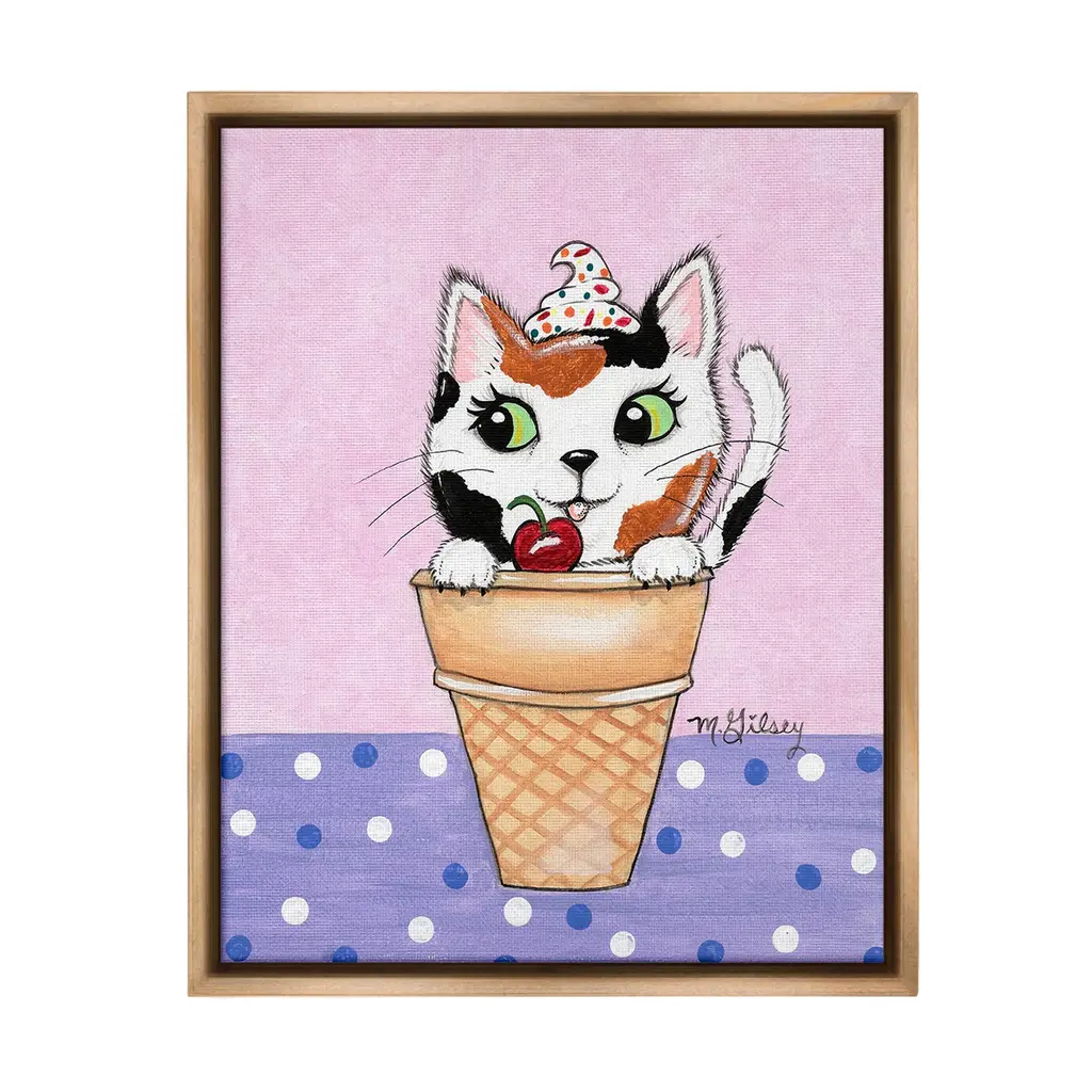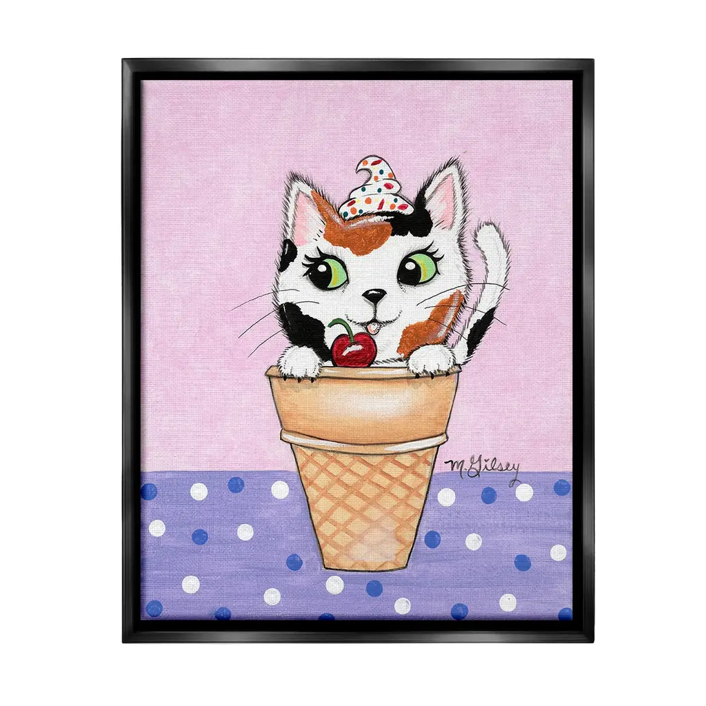 Add dimension to any room with our textured Framed Giclee Artwork. Our framed artwork is securely mounted into a 1.5-inch thick wood grain frame and ready to hang. Frames are available in three alluring styles: black, gray farmhouse and white. In addition, you should check out our oversized options if you want a statement piece. Stupell Wall Art is made in the USA.Features: Dimensions: 11 x 1.5 x 14 FramedFramed Giclee Products are available in the sizes 11"x14", 16"x20" or 24"x30". All Framed Giclee Products have a 1.5" Depth. Wall Art is Ready to Hang with Hardware Free Hanging. No installation required. For Easy Set Up Lean or Layer Artwork on Shelf or Against Wall.Our giclée prints are carefully mounted on a durable MDF backing, and then perfectly finished in a 1.5 inch thick woodgrain frame. Mounted frame colors include black, gray farmhouse and white. Made In USA.Artwork Relates To: Dessert, Food, Ice Cream, Animal, Cat, Mammal, Pet, Sundae, Polka Dot, Pattern, KittenDesign by Michelle Gilsey