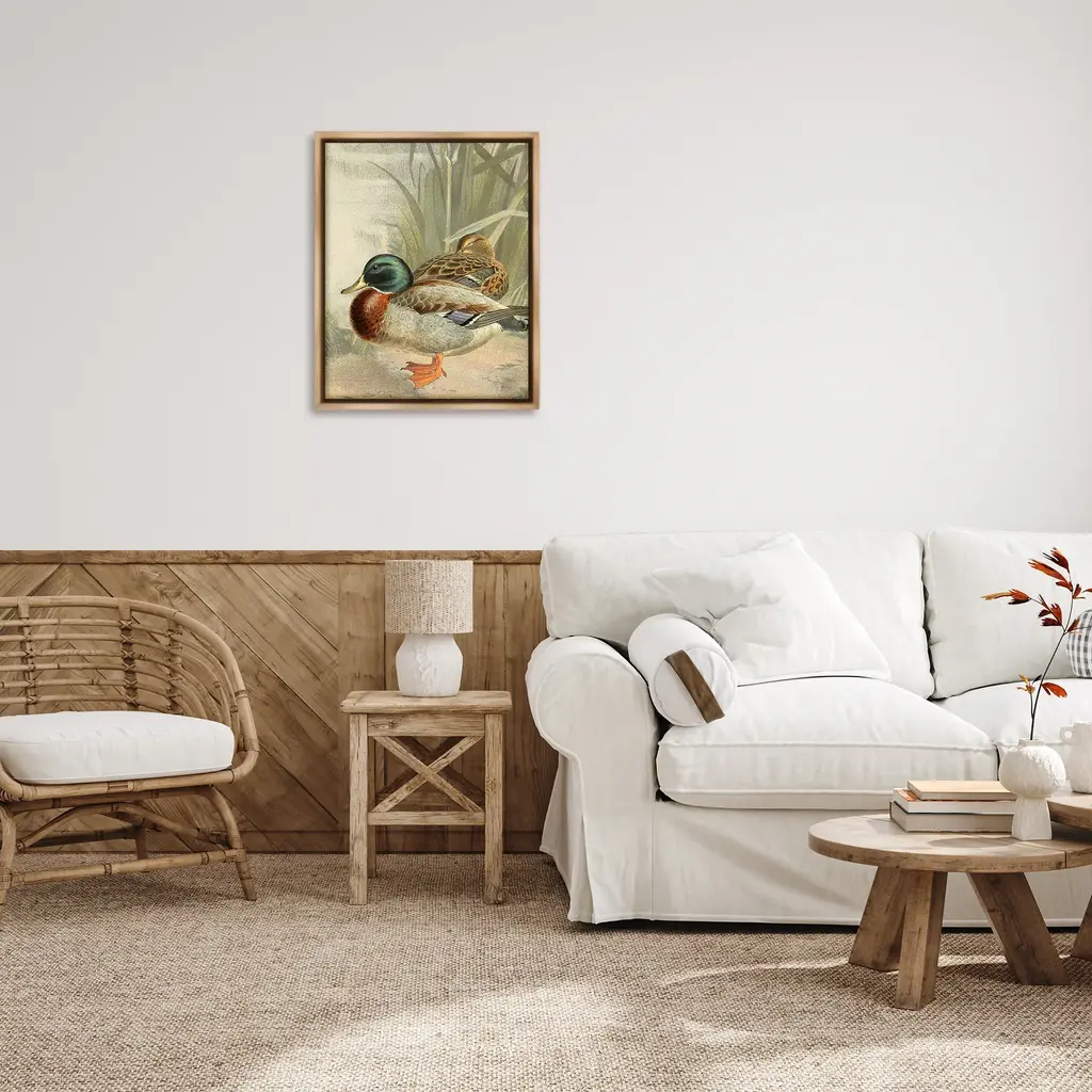 Elevate your home or office to the next level with Stupell Framed Floating Canvas Wall Art. Our premium hand-stretched canvas is mounted securely into a sturdy lightweight frame. The museum-style gap between the wrapped canvas and the box frame gives the illusion of floating artwork. Stupell Wall Art is made in the USA.Features: Dimensions: 17 x 1.7 x 21 Frame, 16 x 1.5 x 20 Canvas ArtFloating Frame Canvas Products are available in sizes 17"x21" and 25"x31". All Floating Frame Canvas Products have a 1.7" Depth.Wall Art is Ready to Hang with Hardware Free Hanging. No Installation required. For Easy Set Up Lean or Layer Artwork on Shelf or Against Wall. Artwork is Permently Fixed into the Frame.Our elevated 1.7" Thick Floating Frame is the perfect complement to our canvas style Wall Art. We use only the highest quality inks in house with industry leading printing solutions. Canvas is hand stretched over a durable wood foundation and then mounted securly into a Modern Box Frame. Made in the USA.Artwork Relates To: Animal, Bird, Duck, Mallard, Beak, Lake, Pond, Landscape, NatureDesign by Gail Fraser