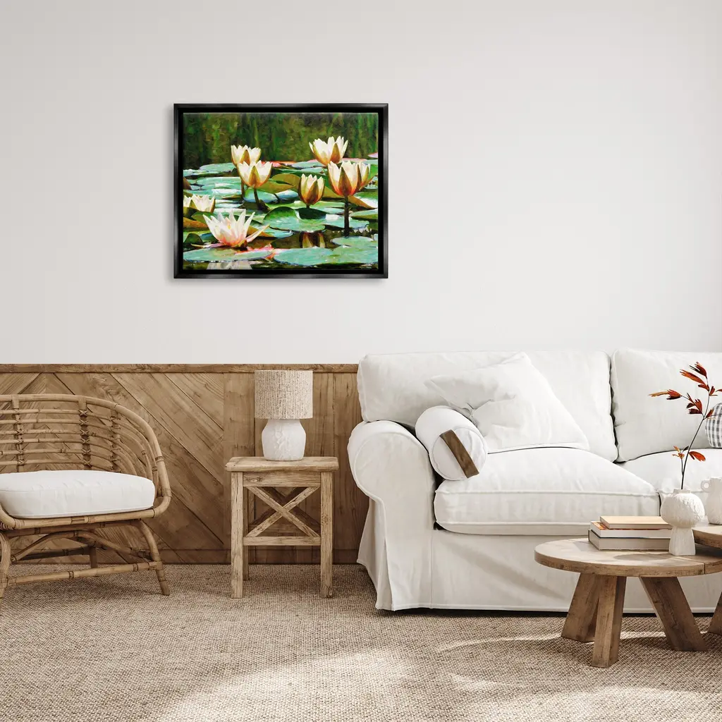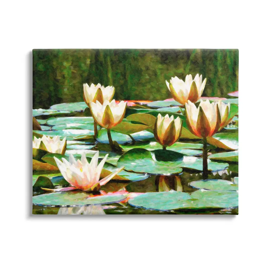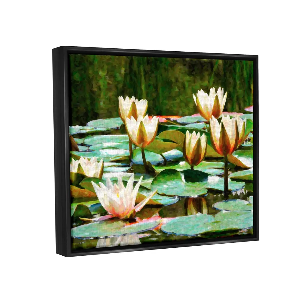 Elevate your home or office to the next level with Stupell Framed Floating Canvas Wall Art. Our premium hand-stretched canvas is mounted securely into a sturdy lightweight frame. The museum-style gap between the wrapped canvas and the box frame gives the illusion of floating artwork. Stupell Wall Art is made in the USA.Features: Dimensions: 21 x 1.7 x 17 Frame, 20 x 1.5 x 16 Canvas ArtFloating Frame Sizes Include Standard: 21 x 1.7 x 17 Oversized: 31 x 1.7 x 25Wall Art is Ready to Hang with Hardware Free Hanging. No installation required. For Easy Set Up Lean or Layer Artwork on Shelf or Against Wall.Our elevated 1.7" Thick Floating Frame is the perfect complement to our canvas style Wall Art. We use only the highest quality inks in house with industry leading printing solutions. Canvas is hand stretched over a durable wood foundation and then mounted securly into a Modern Box Frame. Made in the USA.Artwork Relates To: Flower, Plant, Nature, Pond, Water, Lily, Pond Lily, Petal, LotusDesign by Graffi*Tee Studios