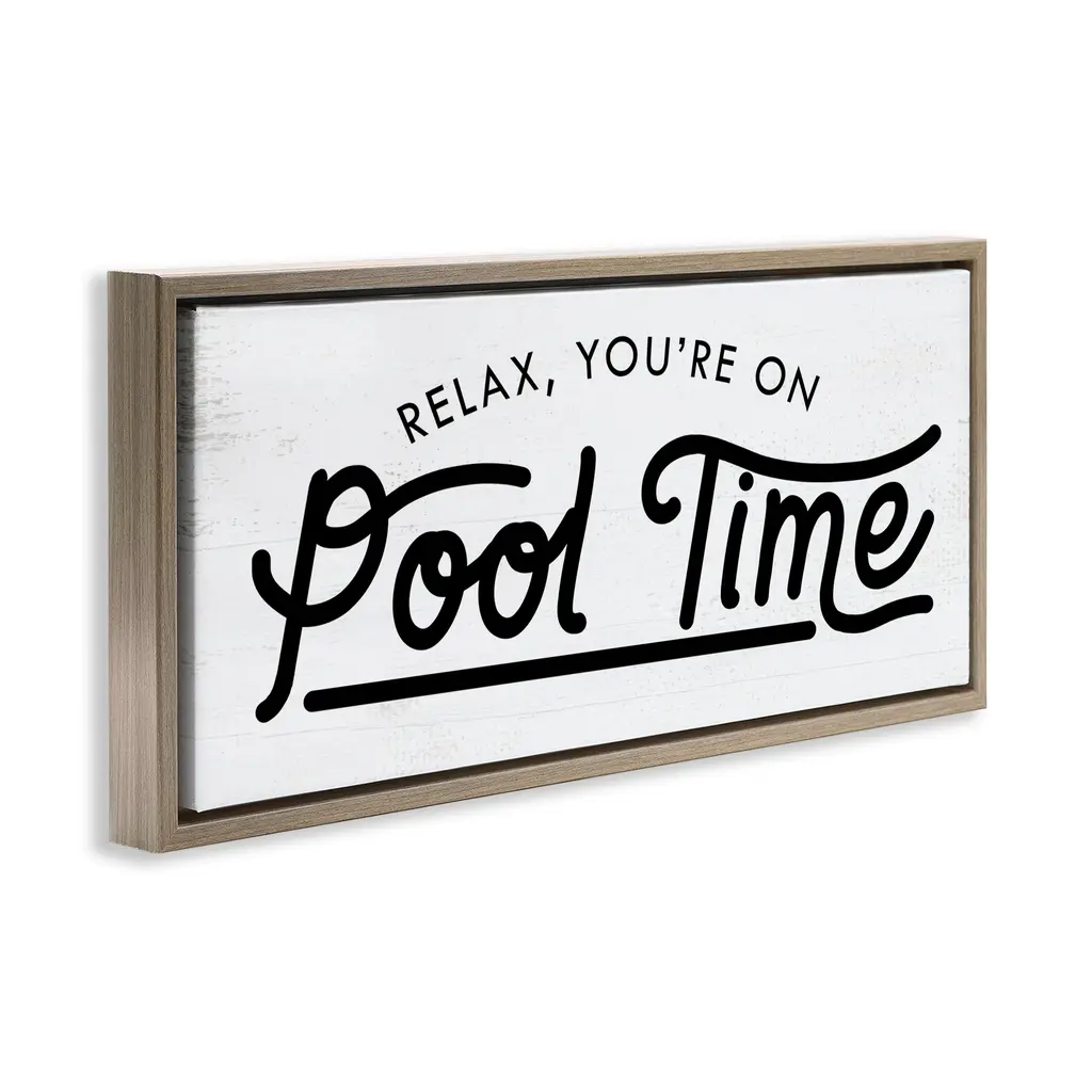 Elevate your home or office to the next level with Stupell Framed Floating Canvas Wall Art. Our premium hand-stretched canvas is mounted securely into a sturdy lightweight frame. The museum-style gap between the wrapped canvas and the box frame gives the illusion of floating artwork. Stupell Wall Art is made in the USA.Features: Dimensions: 25 x 1.7 x 11 Frame, 24 x 1.5 x 10 Canvas ArtFloating Frame Canvas Products are available in sizes 25"x11" and 31"x14". All Floating Frame Canvas Products have a 1.7" Depth.Wall Art is Ready to Hang with Hardware Free Hanging. No Installation required. For Easy Set Up Lean or Layer Artwork on Shelf or Against Wall. Artwork is Permently Fixed into the Frame.Our elevated 1.7" Thick Floating Frame is the perfect complement to our canvas style Wall Art. We use only the highest quality inks in house with industry leading printing solutions. Canvas is hand stretched over a durable wood foundation and then mounted securly into a Modern Box Frame. Made in the USA.Artwork Relates To: Nautical, Summer, Beach, Pool, PhraseDesign by Daphne Polselli
