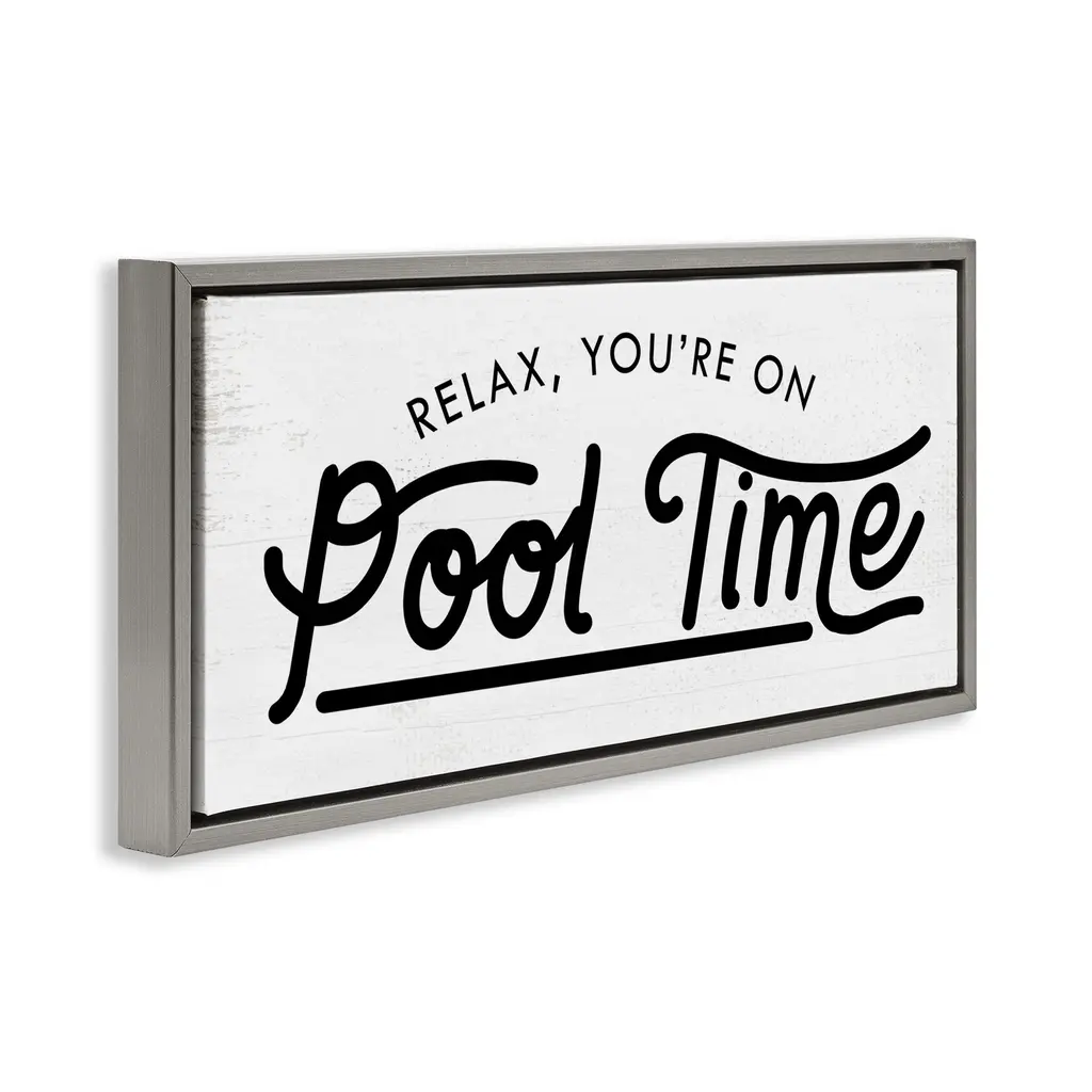 Stupell Pool Time Summer Phrase Framed Floater Canvas Wall Art Design By Daphne Polselli - 31 X 14 - Grey
