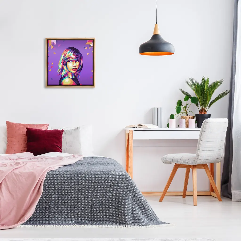 Elevate your home or office to the next level with Stupell Framed Floating Canvas Wall Art. Our premium hand-stretched canvas is mounted securely into a sturdy lightweight frame. The museum-style gap between the wrapped canvas and the box frame gives the illusion of floating artwork. Stupell Wall Art is made in the USA.Features: Dimensions: 18 x 1.7 x 18 Frame, 17 x 1.5 x 17 Canvas ArtFloating Frame Canvas Products are available in sizes 18"x18" and 25"x25". All Floating Frame Canvas Products have a 1.7" Depth.Wall Art is Ready to Hang with Hardware Free Hanging. No Installation required. For Easy Set Up Lean or Layer Artwork on Shelf or Against Wall. Artwork is Permently Fixed into the Frame.Our elevated 1.7" Thick Floating Frame is the perfect complement to our canvas style Wall Art. We use only the highest quality inks in house with industry leading printing solutions. Canvas is hand stretched over a durable wood foundation and then mounted securly into a Modern Box Frame. Made in the USA.Artwork Relates To: Modern, Face, Person, Portrait, Woman, Musician, Pop Culture, Music, GeometricDesign by Birch&Ink