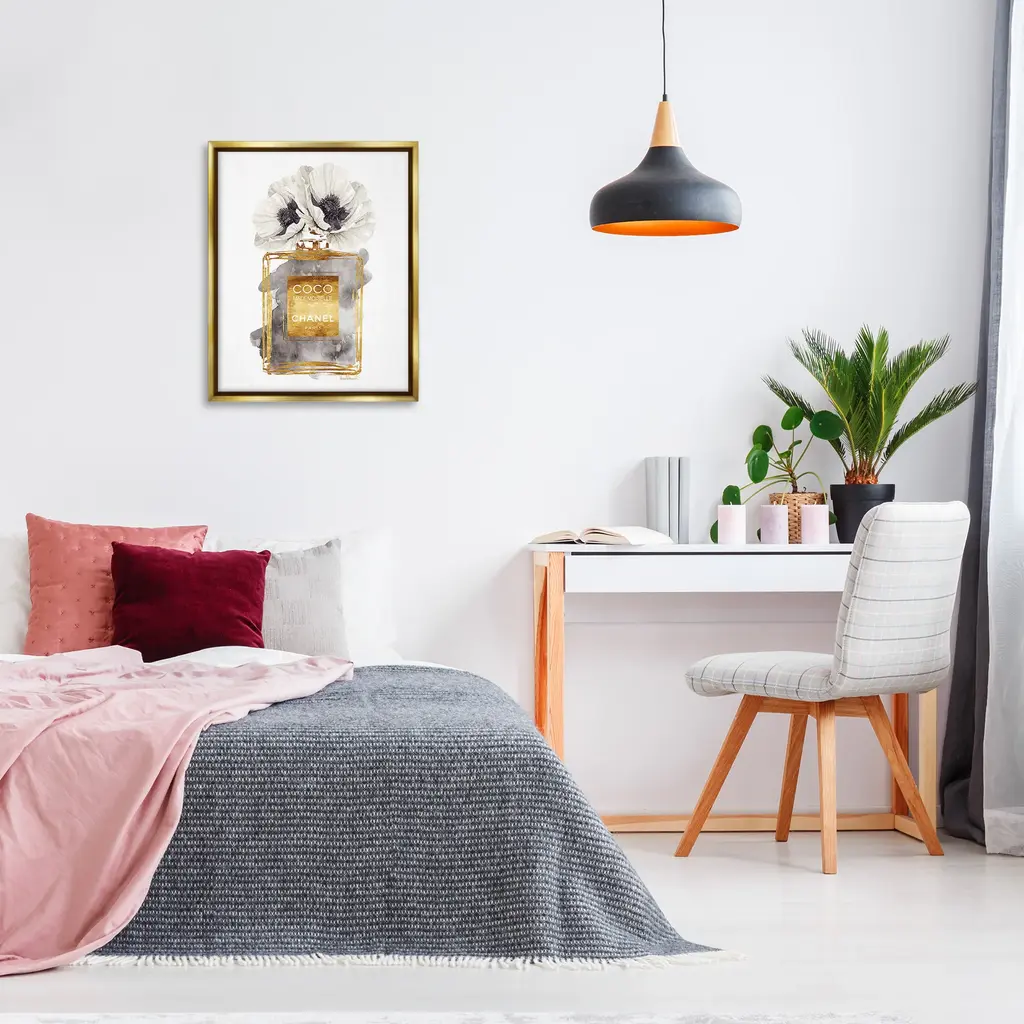 Elevate your home or office to the next level with Stupell Framed Floating Canvas Wall Art. Our premium hand-stretched canvas is mounted securely into a sturdy lightweight frame. The museum-style gap between the wrapped canvas and the box frame gives the illusion of floating artwork. Stupell Wall Art is made in the USA.Features: Dimensions: 17 x 1.7 x 21 Frame, 16 x 1.5 x 20 Canvas ArtFloating Frame Canvas Products are available in sizes 17"x21" and 25"x31". All Floating Frame Canvas Products have a 1.7" Depth.Wall Art is Ready to Hang with Hardware Free Hanging. No Installation required. For Easy Set Up Lean or Layer Artwork on Shelf or Against Wall. Artwork is Permently Fixed into the Frame.Our elevated 1.7" Thick Floating Frame is the perfect complement to our canvas style Wall Art. We use only the highest quality inks in house with industry leading printing solutions. Canvas is hand stretched over a durable wood foundation and then mounted securly into a Modern Box Frame. Made in the USA.Artwork Relates To: Glam, Fashion, Perfume, Flower, Floral, Modern, PoppyDesign by Amanda Greenwood
