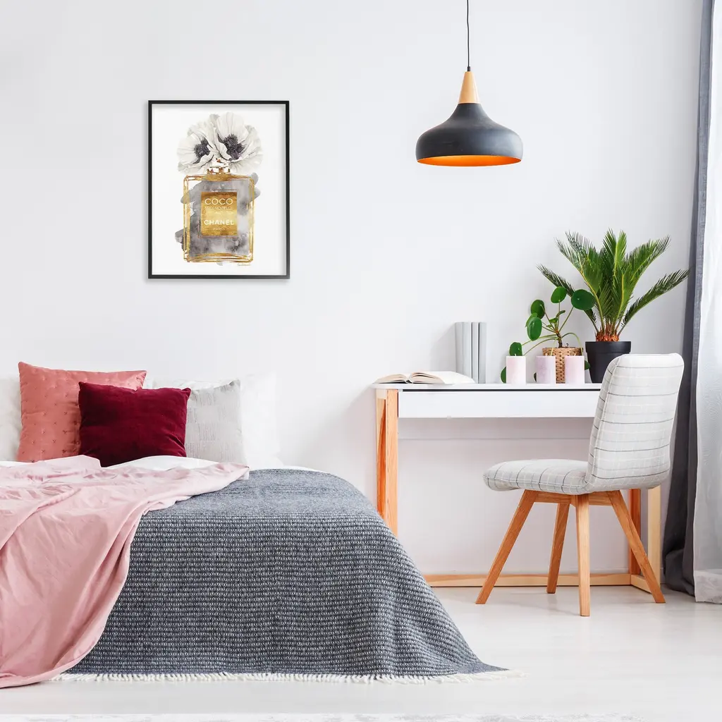 Add dimension to any room with our textured Framed Giclee Artwork. Our framed artwork is securely mounted into a 1.5-inch thick wood grain frame and ready to hang. Frames are available in three alluring styles: black, gray farmhouse and white. In addition, you should check out our oversized options if you want a statement piece. Stupell Wall Art is made in the USA.Features: Dimensions: 11 x 1.5 x 14 FramedFramed Giclee Products are available in the sizes 11"x14", 16"x20" or 24"x30". All Framed Giclee Products have a 1.5" Depth. Wall Art is Ready to Hang with Hardware Free Hanging. No installation required. For Easy Set Up Lean or Layer Artwork on Shelf or Against Wall.Our giclée prints are carefully mounted on a durable MDF backing, and then perfectly finished in a 1.5 inch thick woodgrain frame. Mounted frame colors include black, gray farmhouse and white. Made In USA.Artwork Relates To: Glam, Fashion, Perfume, Flower, Floral, Modern, PoppyDesign by Amanda Greenwood