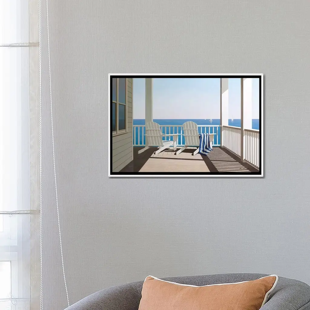 Stupell Porch Chairs Overlooking The Tide Realistic Painting Framed Giclee Texturized Art By Zhen-Huan Lu - 11 X 14 - Grey