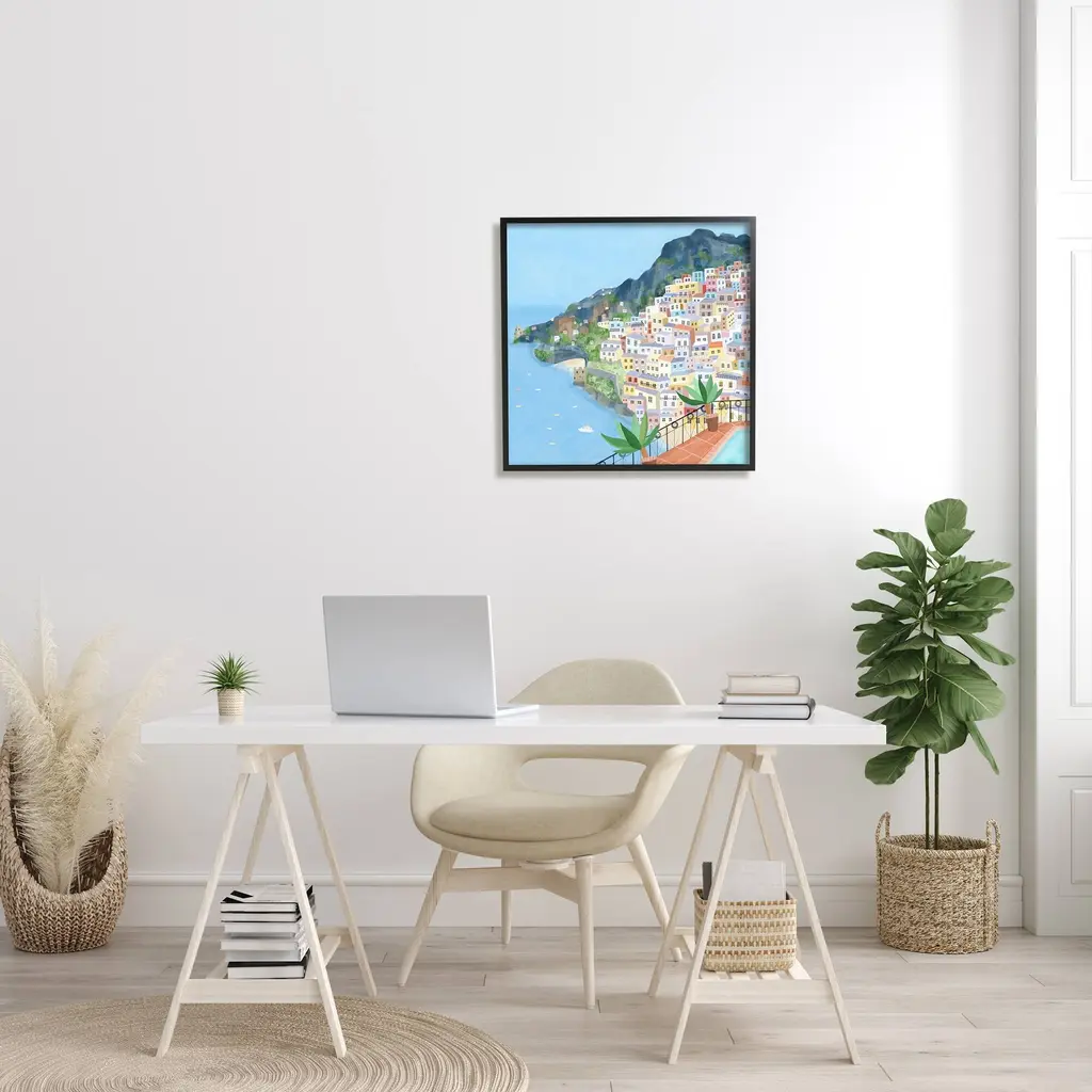 Stupell Positano Cliffside Coastal City Architecture Italian Buildings Framed Wall Art - Multi-Color - 24 X 24 - Black