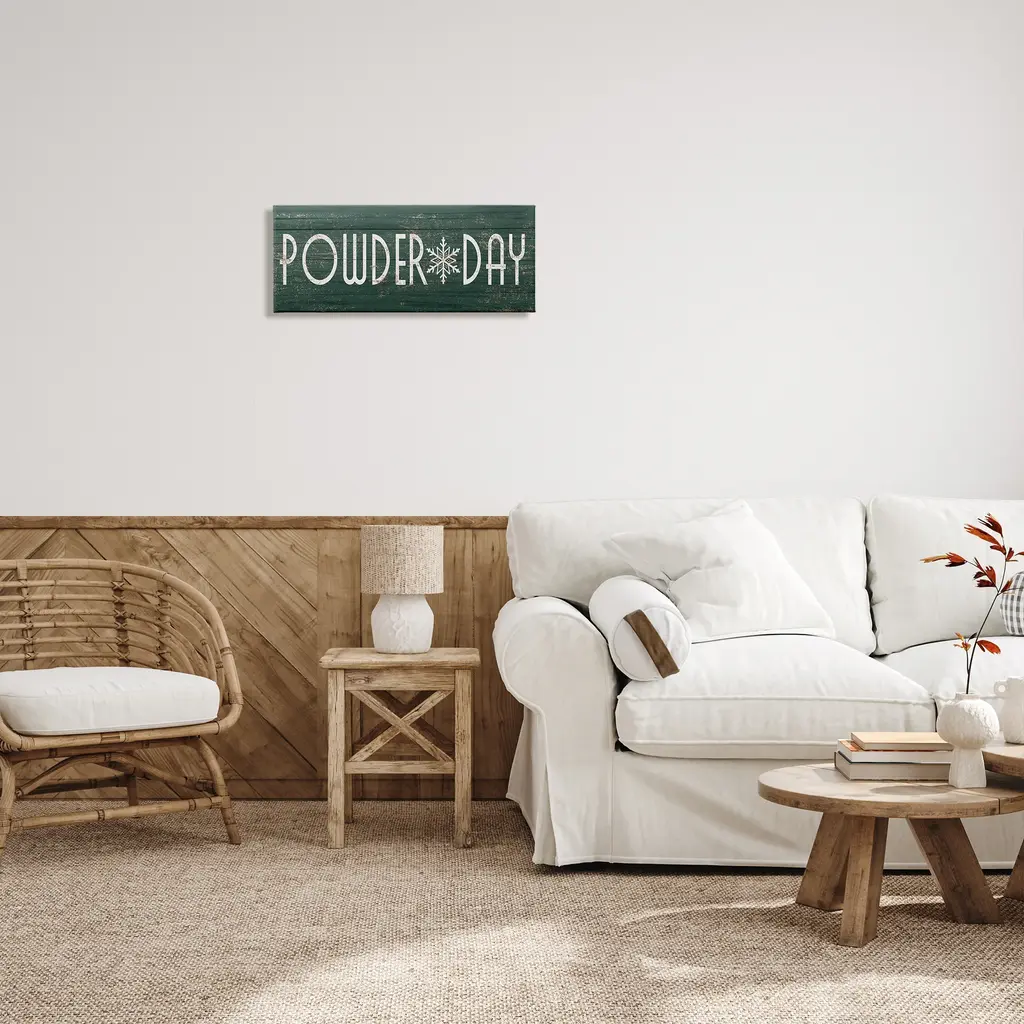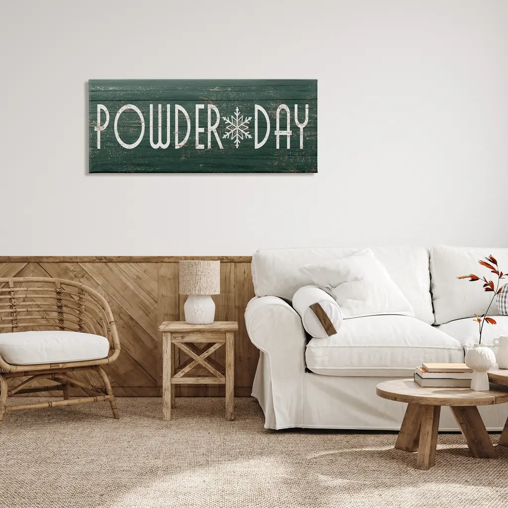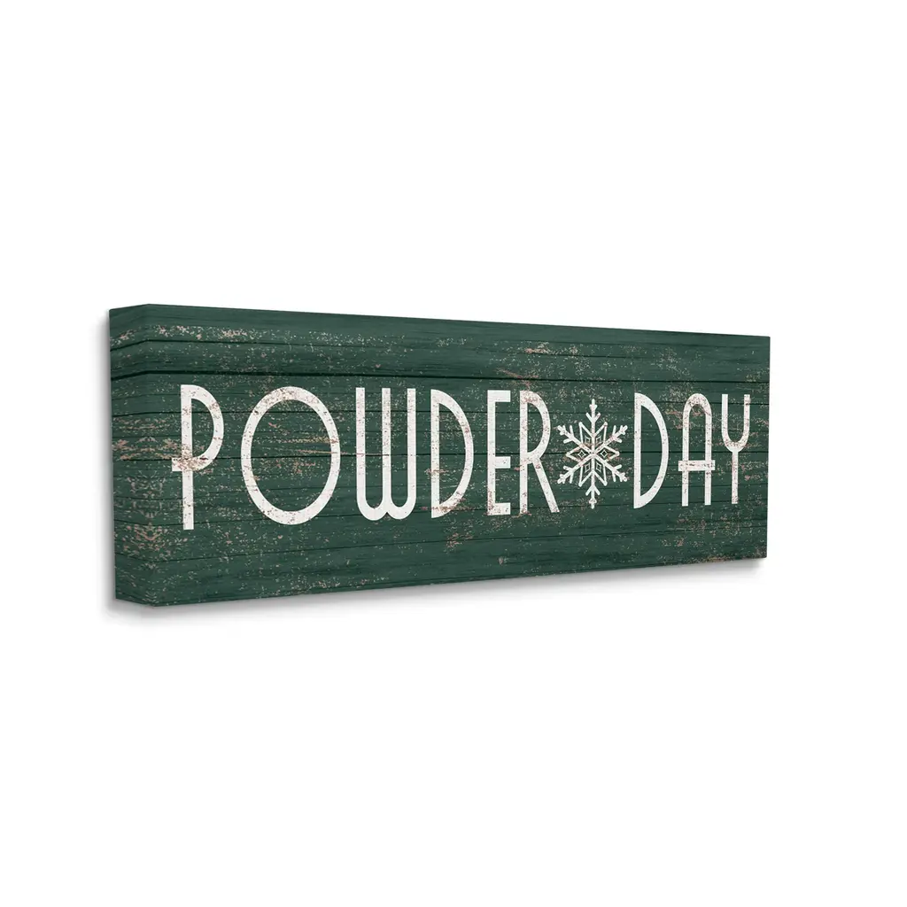 Stupell Powder Day Phrase Snowflake Typography Ski Winter Sports Canvas Wall Art - Green - 24 X 10
