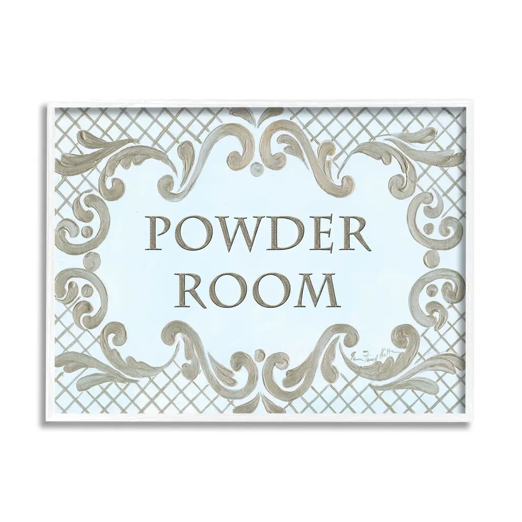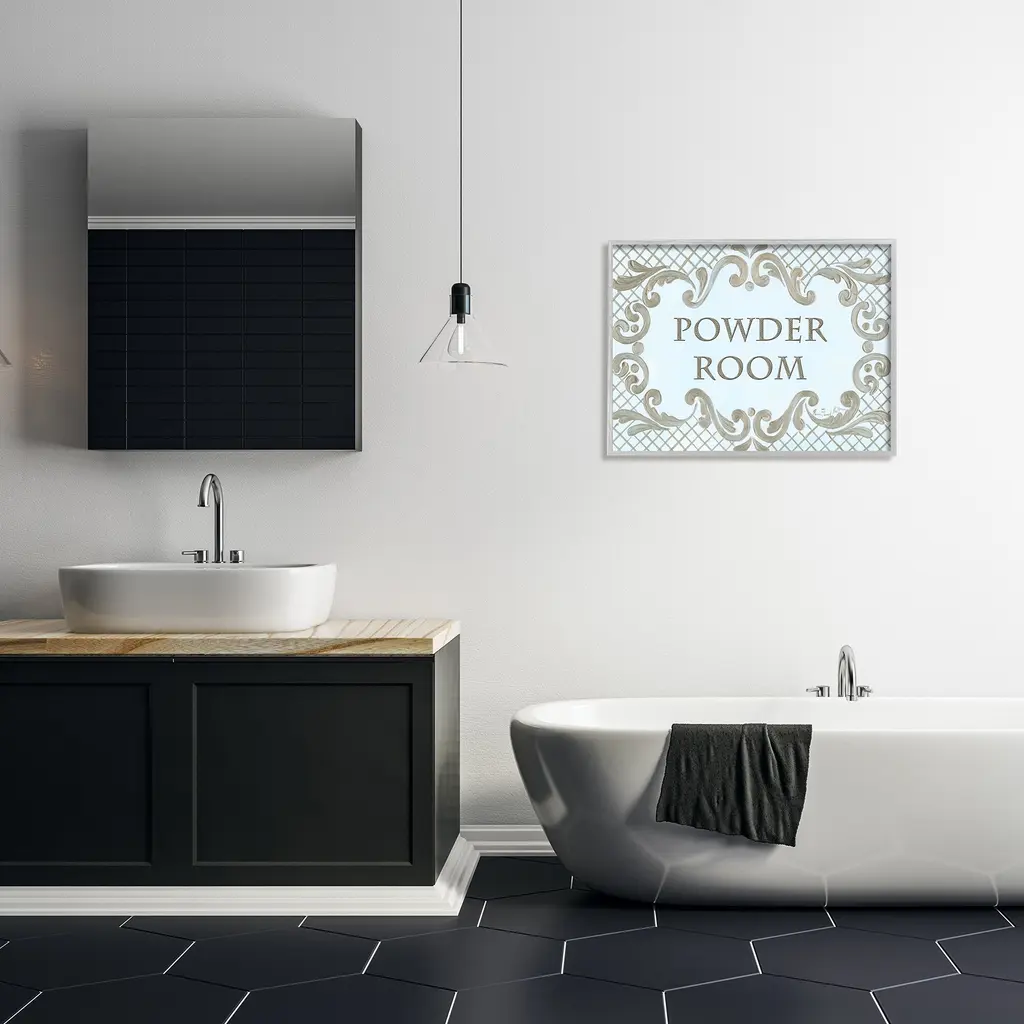 Stupell Powder Room Aqua And Gold Lattice Bathroom Wall Art, Design By Jane Keltner - 24 X 30 - Grey