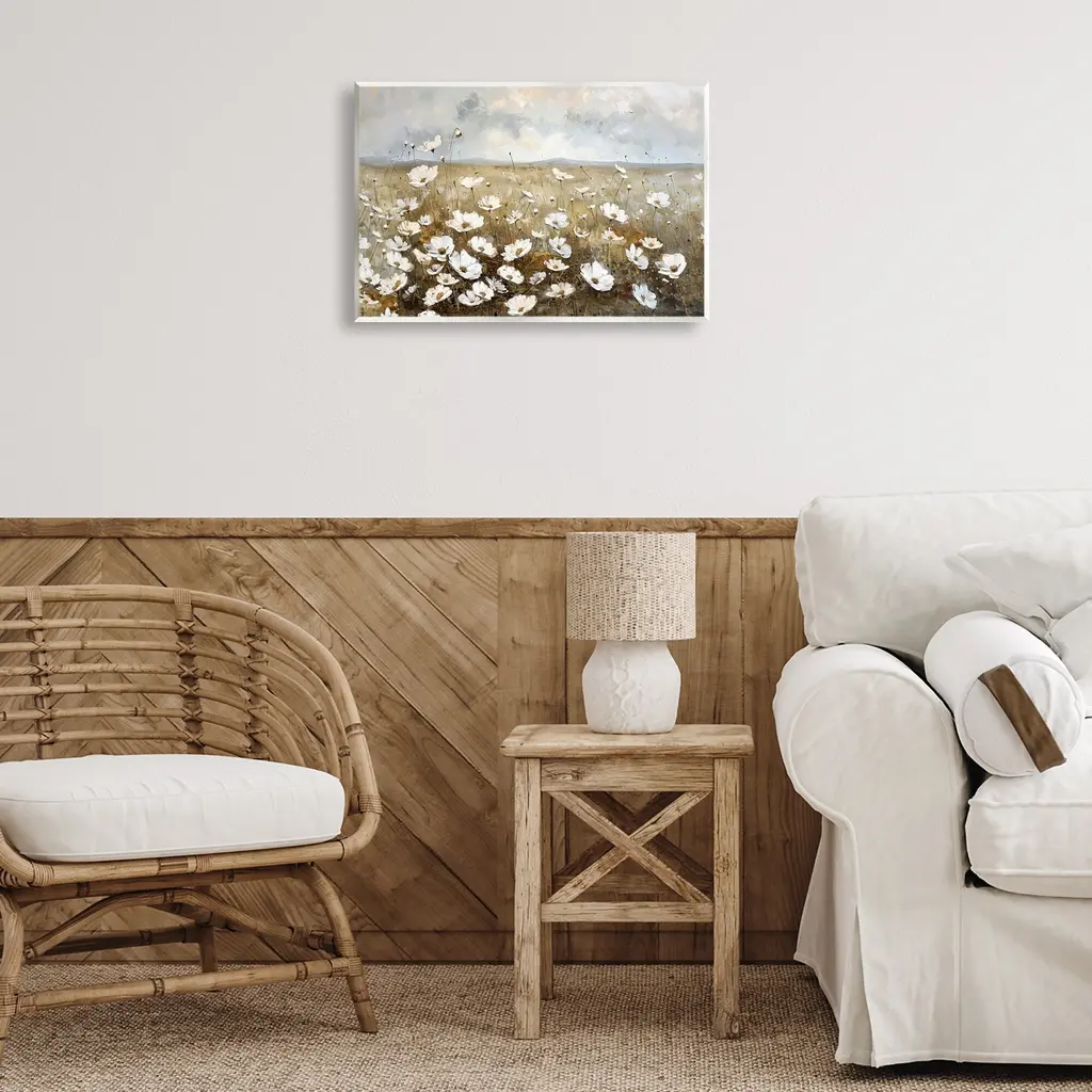 Our wall plaques start as high-quality lithograph prints mounted on durable 0.5-inch thick MDF wood. Each piece is hand finished and comes with a fresh layer of white foil on the sides to give it a crisp, clean look. Plaques arrive ready to hang without installation and come with removable plastic corners to keep them from damage in transit. Stupell Wall Art is made in the USA.Features: Dimensions: 15 x 0.5 x 10 InchesWall Plaque Product Sizes Include 15"x10" and 19"x13". All wall plaque products have a 0.5" Depth. Wall Art is Ready to Hang with Hardware Free Hanging. No installation required. For Easy Set Up Lean or Layer Artwork on Shelf or Against Wall.All of our wall plaques start off as high quality lithograph prints that are then mounted on durable 0.5 inch thick MDF wood. Each piece is hand finished and comes with a fresh layer of foil on the sides to give it a crisp clean look. Made In USA.Artwork Relates To: Painting, Flower, Petal, Plant, Daisy, Field, Grassland, Meadow, LandscapeDesign by Ramona Murdock