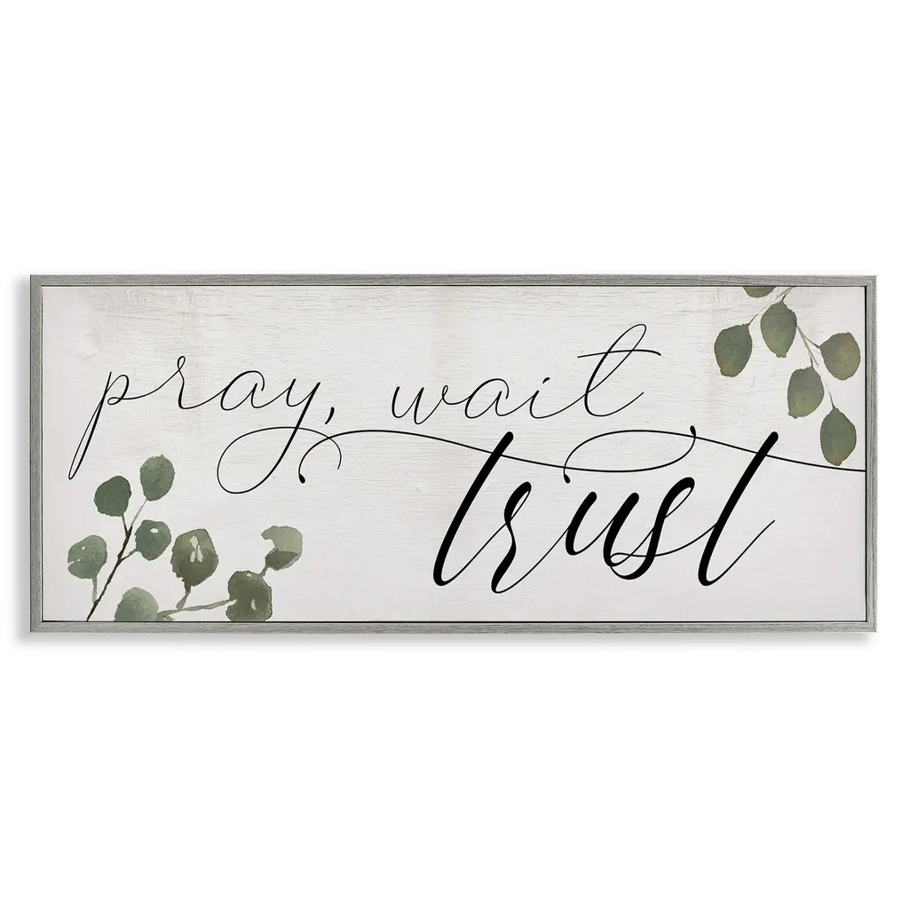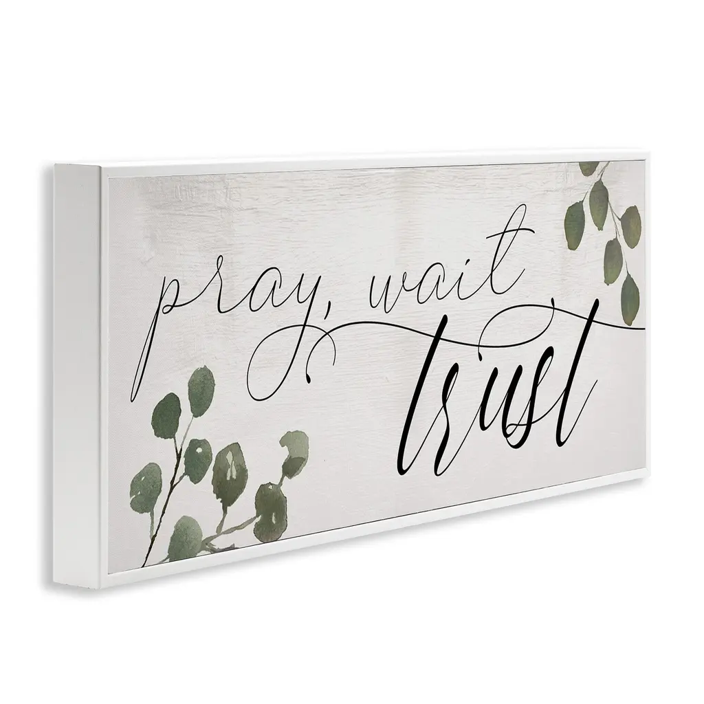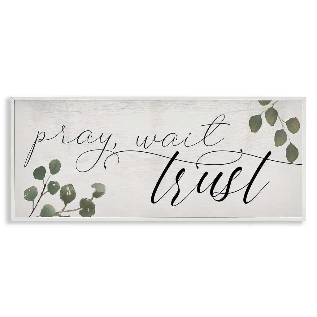Stupell Pray Wait Trust Phrase Framed Giclee Art Design By Daphne Polselli - 24 X 10 - White