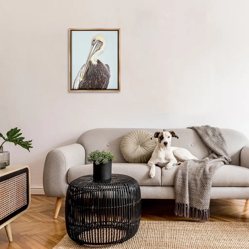 Elevate your home or office to the next level with Stupell Framed Floating Canvas Wall Art. Our premium hand-stretched canvas is mounted securely into a sturdy lightweight frame. The museum-style gap between the wrapped canvas and the box frame gives the illusion of floating artwork. Stupell Wall Art is made in the USA.Features: Dimensions: 17 x 1.7 x 21 Frame, 16 x 1.5 x 20 Canvas ArtFloating Frame Canvas Products are available in sizes 17"x21" and 25"x31". All Floating Frame Canvas Products have a 1.7" Depth.Wall Art is Ready to Hang with Hardware Free Hanging. No Installation required. For Easy Set Up Lean or Layer Artwork on Shelf or Against Wall. Artwork is Permently Fixed into the Frame.Our elevated 1.7" Thick Floating Frame is the perfect complement to our canvas style Wall Art. We use only the highest quality inks in house with industry leading printing solutions. Canvas is hand stretched over a durable wood foundation and then mounted securly into a Modern Box Frame. Made in the USA.Artwork Relates To: Animal, Beak, Bird, Waterfowl, Pelican, NauticalDesign by Gail Peck