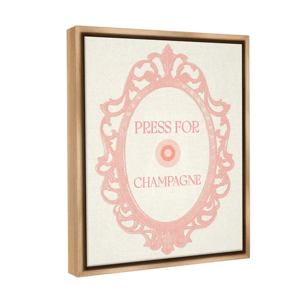 Elevate your home or office to the next level with Stupell Framed Floating Canvas Wall Art. Our premium hand-stretched canvas is mounted securely into a sturdy lightweight frame. The museum-style gap between the wrapped canvas and the box frame gives the illusion of floating artwork. Stupell Wall Art is made in the USA.Features: Dimensions: 17 x 1.7 x 21 Frame, 16 x 1.5 x 20 Canvas ArtFloating Frame Canvas Products are available in sizes 17"x21" and 25"x31". All Floating Frame Canvas Products have a 1.7" Depth.Wall Art is Ready to Hang with Hardware Free Hanging. No Installation required. For Easy Set Up Lean or Layer Artwork on Shelf or Against Wall. Artwork is Permently Fixed into the Frame.Our elevated 1.7" Thick Floating Frame is the perfect complement to our canvas style Wall Art. We use only the highest quality inks in house with industry leading printing solutions. Canvas is hand stretched over a durable wood foundation and then mounted securly into a Modern Box Frame. Made in the USA.Artwork Relates To: Glam, Fashion, Champagne, Liquor, Alcohol, Wine, Vintage, Pattern, Press For ChampagneDesign by Lil' Rue
