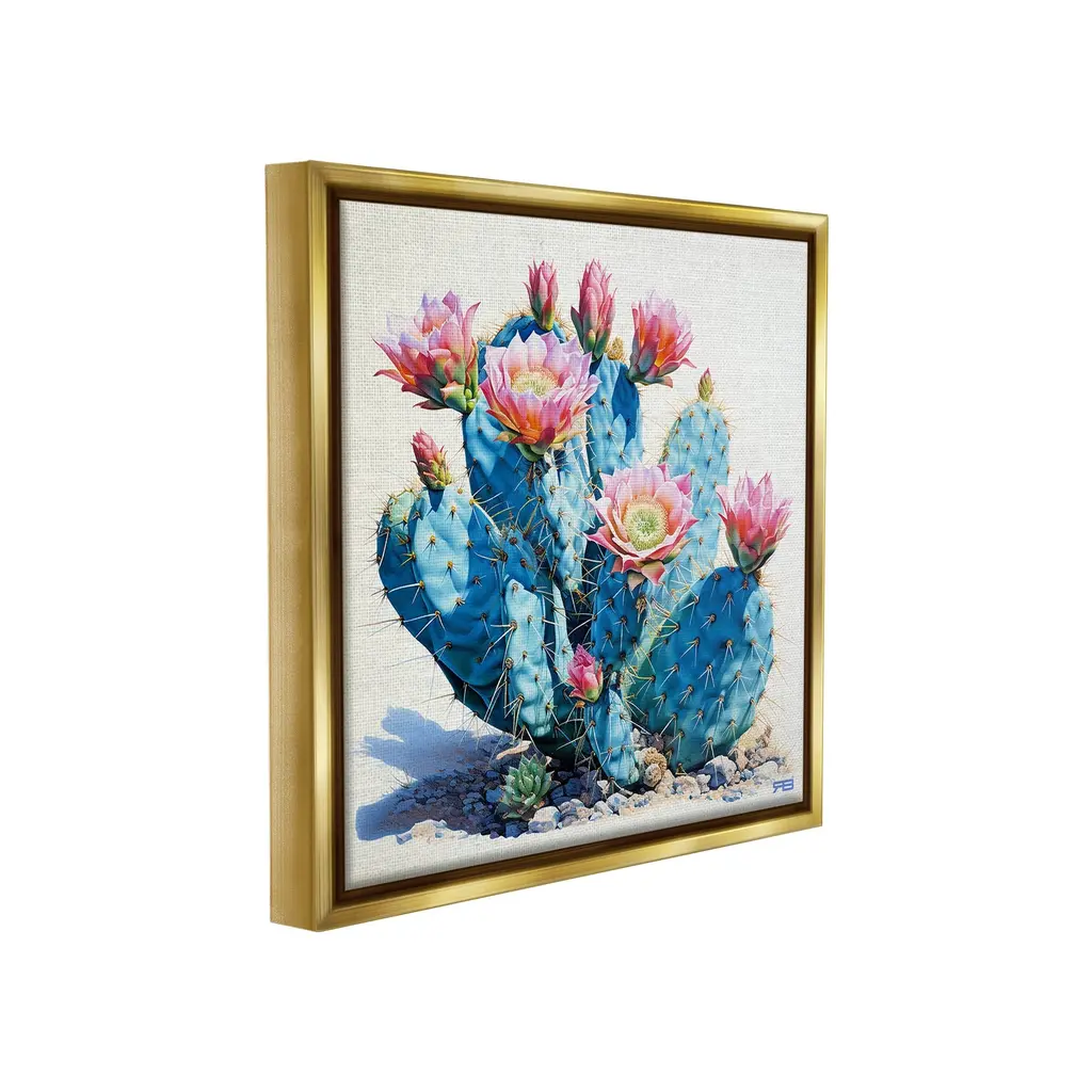 Stupell Prickly Cactus Blossoms Framed Floater Canvas Wall Art Design By Rb - 18 X 18 - Gold