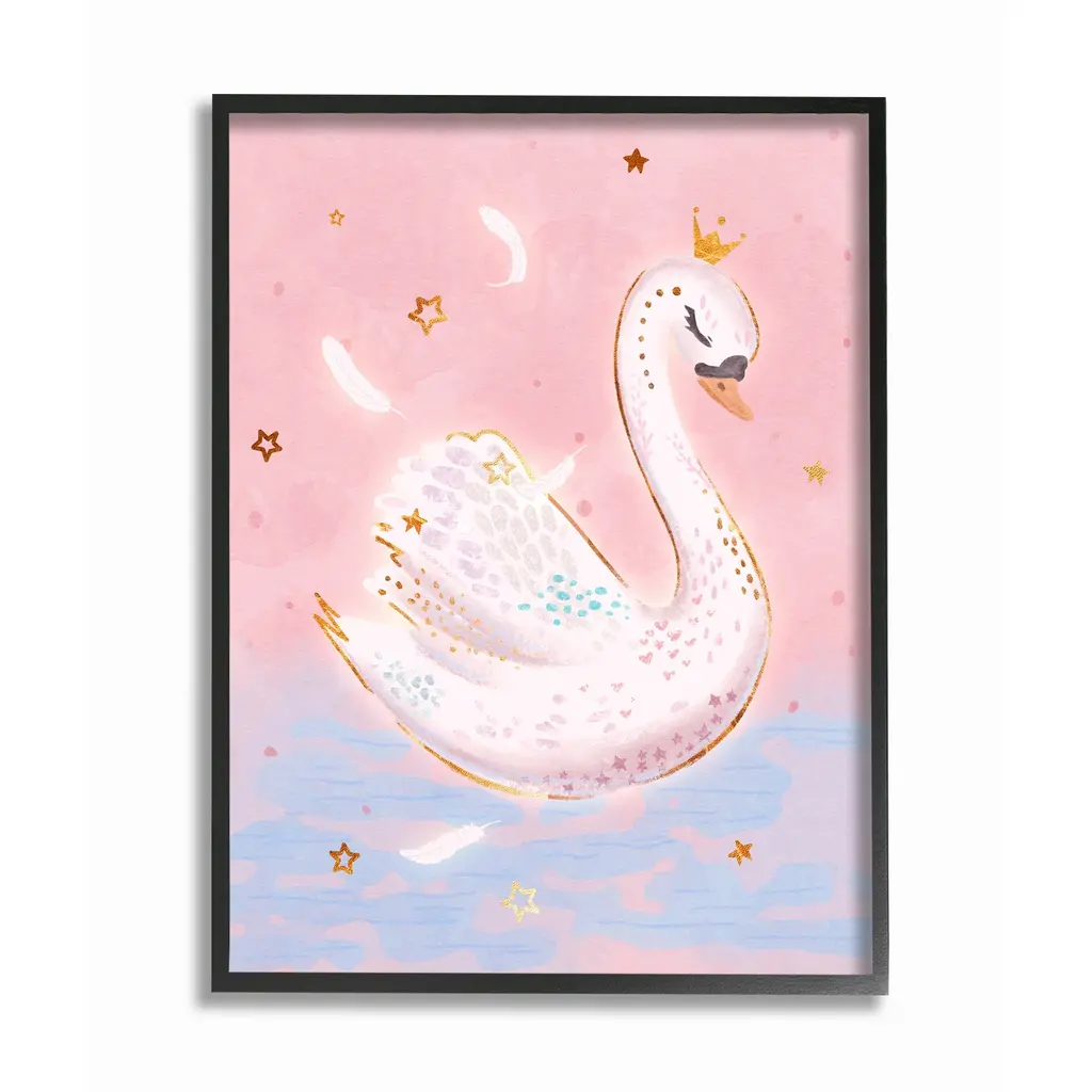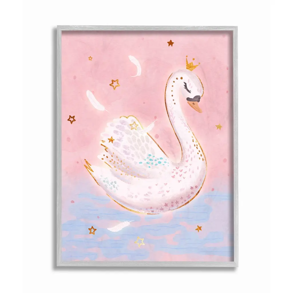 Stupell Princess Swan Lake Girl's Nursery Animal Illustration Framed Wall Art - Pink - 16 X 20 - Grey