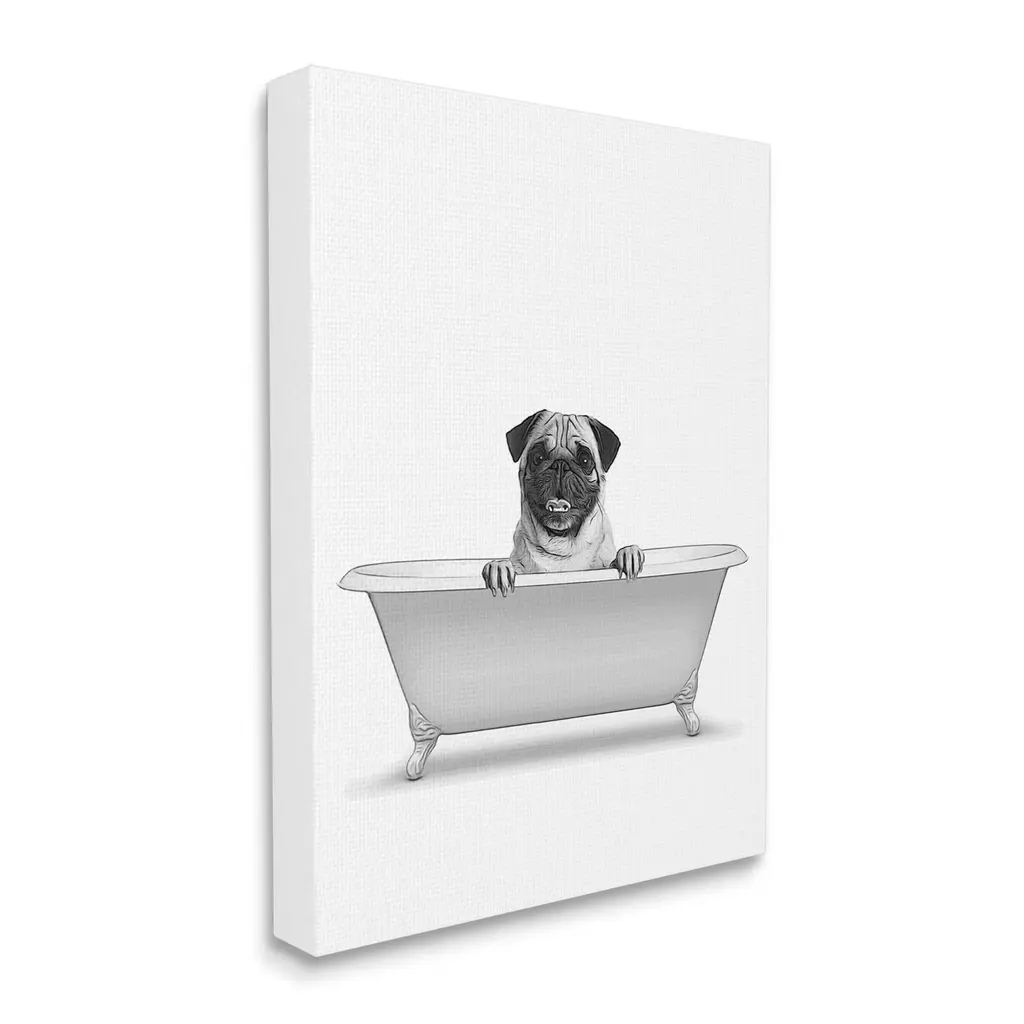 Stupell Pug Dog In Tub Bathroom Pet Canvas Wall Art By Annalisa Latella - 16 X 20