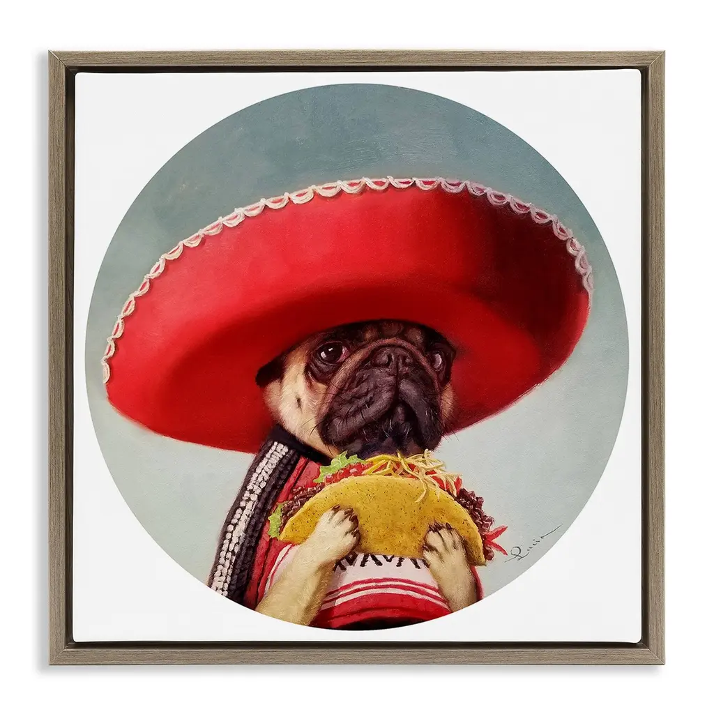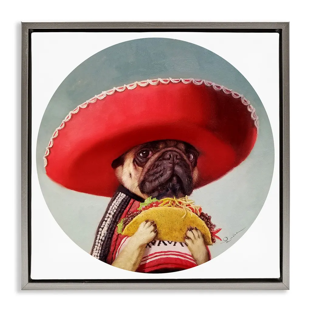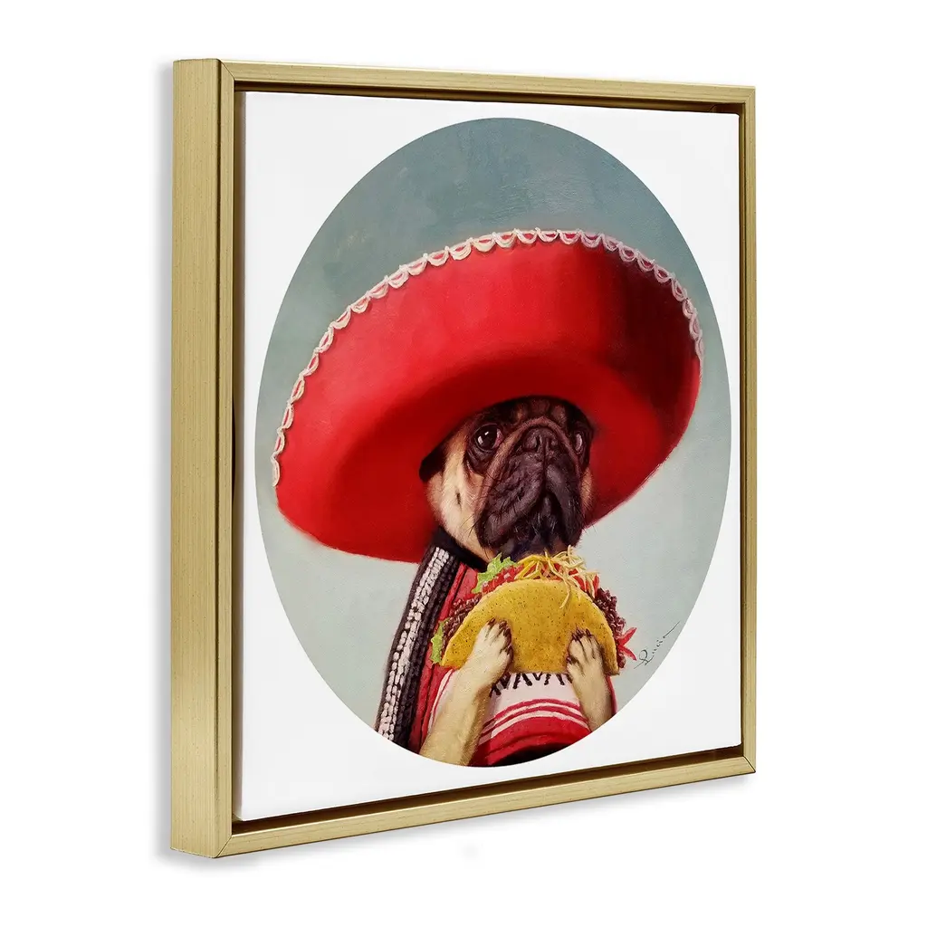 Elevate your home or office to the next level with Stupell Framed Floating Canvas Wall Art. Our premium hand-stretched canvas is mounted securely into a sturdy lightweight frame. The museum-style gap between the wrapped canvas and the box frame gives the illusion of floating artwork. Stupell Wall Art is made in the USA.Features: Dimensions: 18 x 1.7 x 18 Frame, 17 x 1.5 x 17 Canvas ArtFloating Frame Canvas Products are available in sizes 18"x18" and 25"x25". All Floating Frame Canvas Products have a 1.7" Depth.Wall Art is Ready to Hang with Hardware Free Hanging. No Installation required. For Easy Set Up Lean or Layer Artwork on Shelf or Against Wall. Artwork is Permently Fixed into the Frame.Our elevated 1.7" Thick Floating Frame is the perfect complement to our canvas style Wall Art. We use only the highest quality inks in house with industry leading printing solutions. Canvas is hand stretched over a durable wood foundation and then mounted securly into a Modern Box Frame. Made in the USA.Artwork Relates To: Animal, Humor, Pug, Sumbrero, Taco, Food, Kitchen, World CulturesDesign by Lucia Heffernan