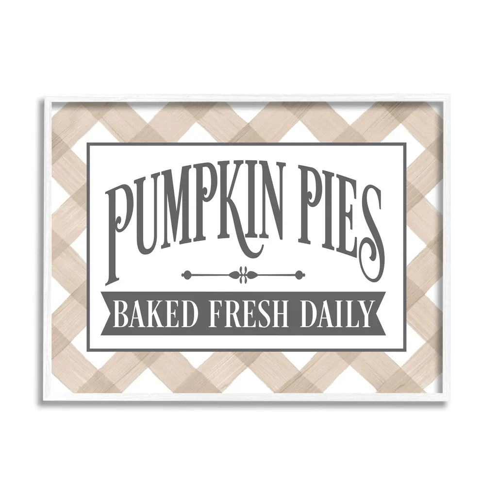 Our Framed Giclee Wall Art adds a touch of class to any space in your home or office. Frames are available in three alluring styles: black, gray farmhouse and white. Our textured artwork will add more depth and dimension to any space. Each piece is mounted with a 1.5 inch thick wood grain frame that is ready to hang! Looking for a statement piece? We have oversized artwork available.Features: Wall Art is Ready to Hang - No Installation or Hardware Needed. For Easy Set Up Lean or Layer Artwork on Shelf or Against Wall.Our giclee prints are carefully mounted on a durable MDF backing, and then perfectly finished in a 1.5 inch thick woodgrain frame. Mounted frame colors include black, gray farmhouse and white. Made In USA.Artwork Relates To: Typography, Sign, Pumpkin PiesDesign by Lettered and Lined