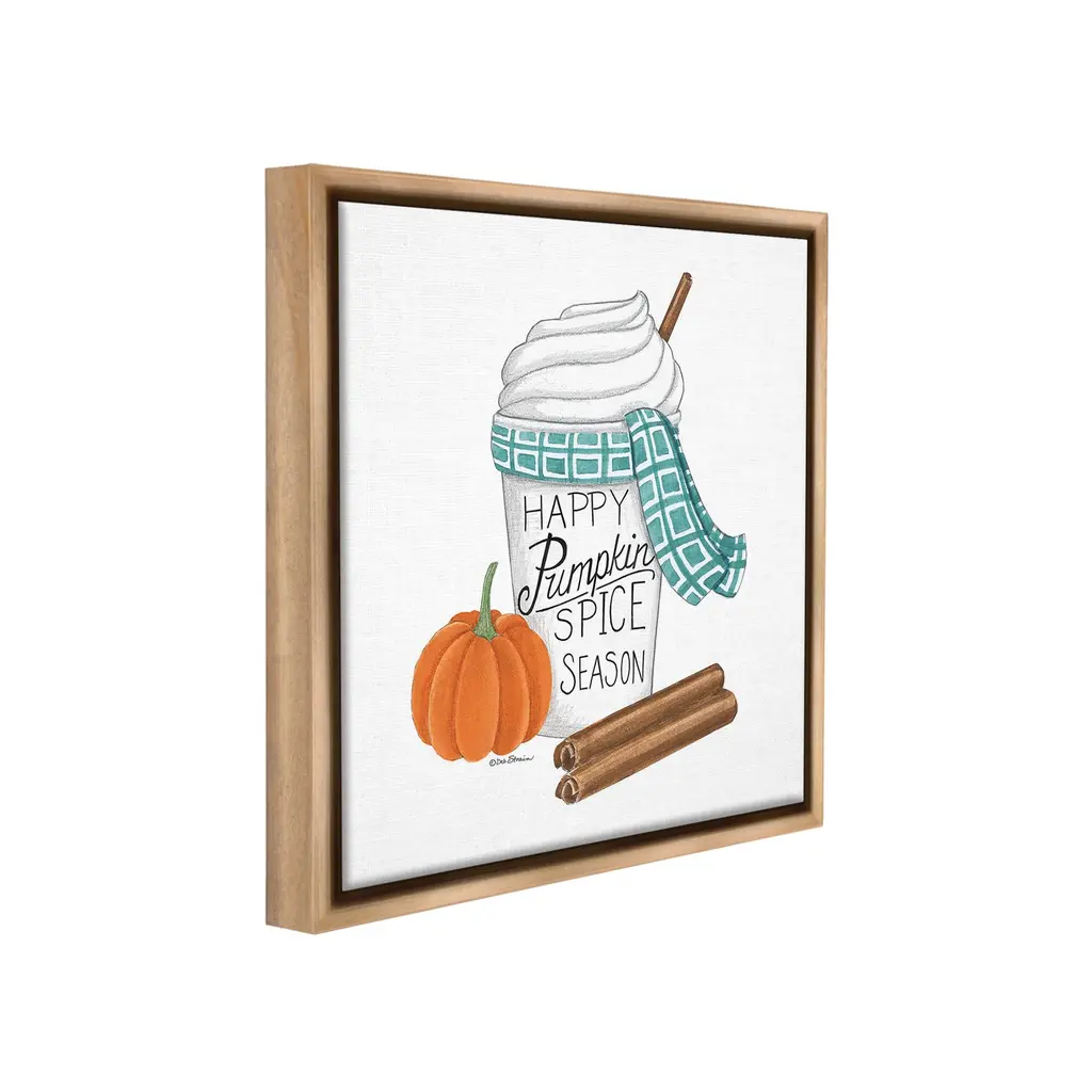 Stupell Pumpkin Spice Season Framed Floater Canvas Wall Art Design By Deb Strain - 18 X 18 - Brown