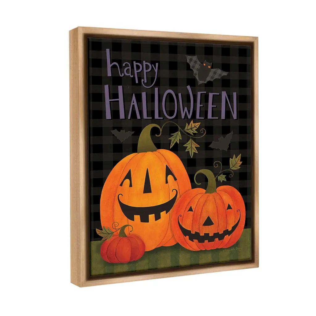 Elevate your home or office to the next level with Stupell Framed Floating Canvas Wall Art. Our premium hand-stretched canvas is mounted securely into a sturdy lightweight frame. The museum-style gap between the wrapped canvas and the box frame gives the illusion of floating artwork. Stupell Wall Art is made in the USA.Features: Dimensions: 17 x 1.7 x 21 Frame, 16 x 1.5 x 20 Canvas ArtFloating Frame Canvas Products are available in sizes 17"x21" and 25"x31". All Floating Frame Canvas Products have a 1.7" Depth.Wall Art is Ready to Hang with Hardware Free Hanging. No Installation required. For Easy Set Up Lean or Layer Artwork on Shelf or Against Wall. Artwork is Permently Fixed into the Frame.Our elevated 1.7" Thick Floating Frame is the perfect complement to our canvas style Wall Art. We use only the highest quality inks in house with industry leading printing solutions. Canvas is hand stretched over a durable wood foundation and then mounted securly into a Modern Box Frame. Made in the USA.Artwork Relates To: Festival, Halloween, Jack-o-lantern, Pumpkin, Botanical, Bat, Plaid, Pattern, Happy HalloweenDesign by Bernadette Deming
