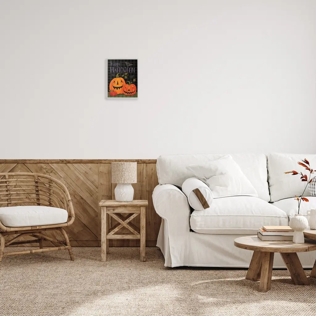 Add dimension to any room with our textured Framed Giclee Artwork. Our framed artwork is securely mounted into a 1.5-inch thick wood grain frame and ready to hang. Frames are available in three alluring styles: black, gray farmhouse and white. In addition, you should check out our oversized options if you want a statement piece. Stupell Wall Art is made in the USA.Features: Dimensions: 11 x 1.5 x 14 FramedFramed Giclee Products are available in the sizes 11"x14", 16"x20" or 24"x30". All Framed Giclee Products have a 1.5" Depth. Wall Art is Ready to Hang with Hardware Free Hanging. No installation required. For Easy Set Up Lean or Layer Artwork on Shelf or Against Wall.Our giclée prints are carefully mounted on a durable MDF backing, and then perfectly finished in a 1.5 inch thick woodgrain frame. Mounted frame colors include black, gray farmhouse and white. Made In USA.Artwork Relates To: Festival, Halloween, Jack-o-lantern, Pumpkin, Botanical, Bat, Plaid, Pattern, Happy HalloweenDesign by Bernadette Deming