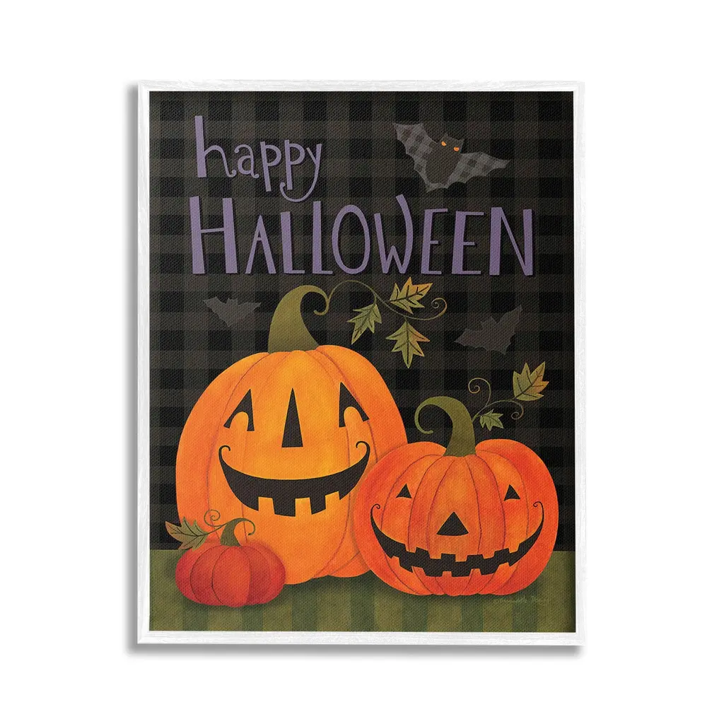 Stupell Pumpkins & Bat On Plaid Wall Plaque Art Design By Bernadette Deming - 10 X 15