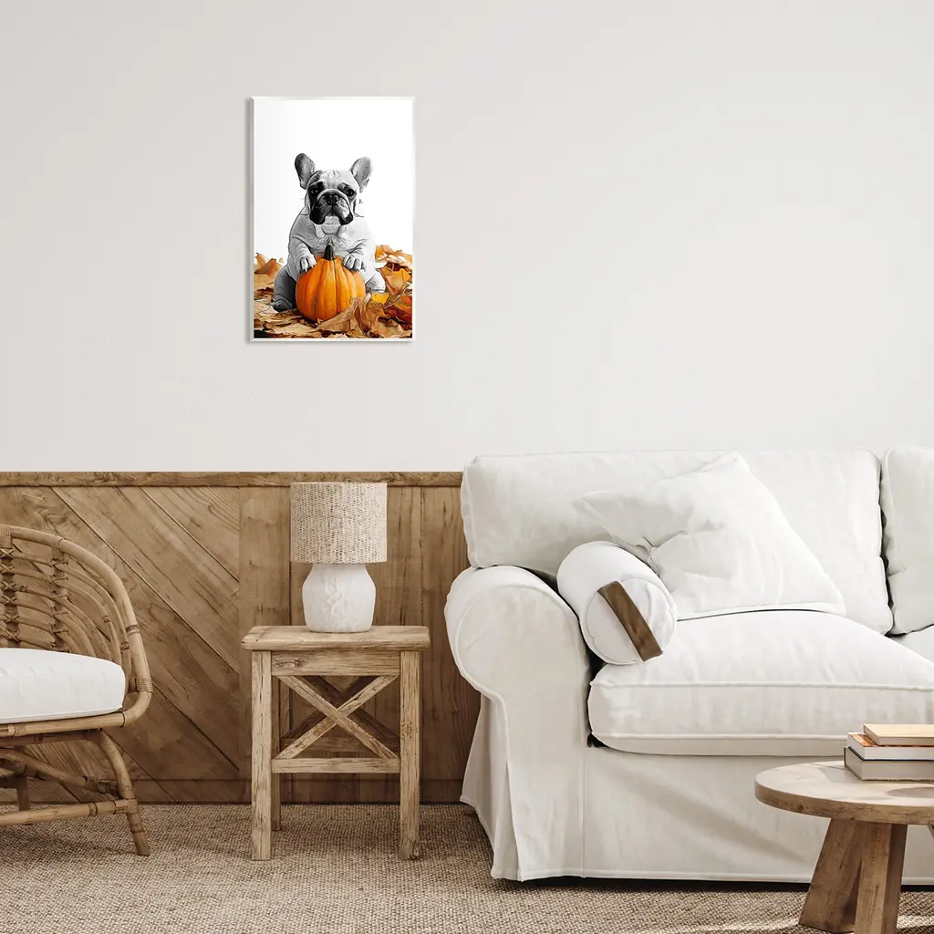 Our wall plaques start as high-quality lithograph prints mounted on durable 0.5-inch thick MDF wood. Each piece is hand finished and comes with a fresh layer of white foil on the sides to give it a crisp, clean look. Plaques arrive ready to hang without installation and come with removable plastic corners to keep them from damage in transit. Stupell Industries Wall Art is made in the USA.Features: Dimensions: 10 x 0.5 x 15 InchesWall Plaque Sizes Include Standard: 10 x 0.5 x 15 Oversized: 13 x 0.5 x 19Wall Art is Ready to Hang with Hardware Free Hanging. No installation required. For Easy Set Up Lean or Layer Artwork on Shelf or Against Wall.All of our wall plaques start off as high quality lithograph prints that are then mounted on durable 0.5 inch thick MDF wood. Each piece is hand finished and comes with a fresh layer of foil on the sides to give it a crisp clean look. Made In USA.Artwork Relates To: Plant, Produce, Pumpkin, Animal, Bulldog, Canine, Dog, Mammal, Pet, Leaf, French Bulldog, Puppy, Fall, AutumnDesign by Annalisa Latella