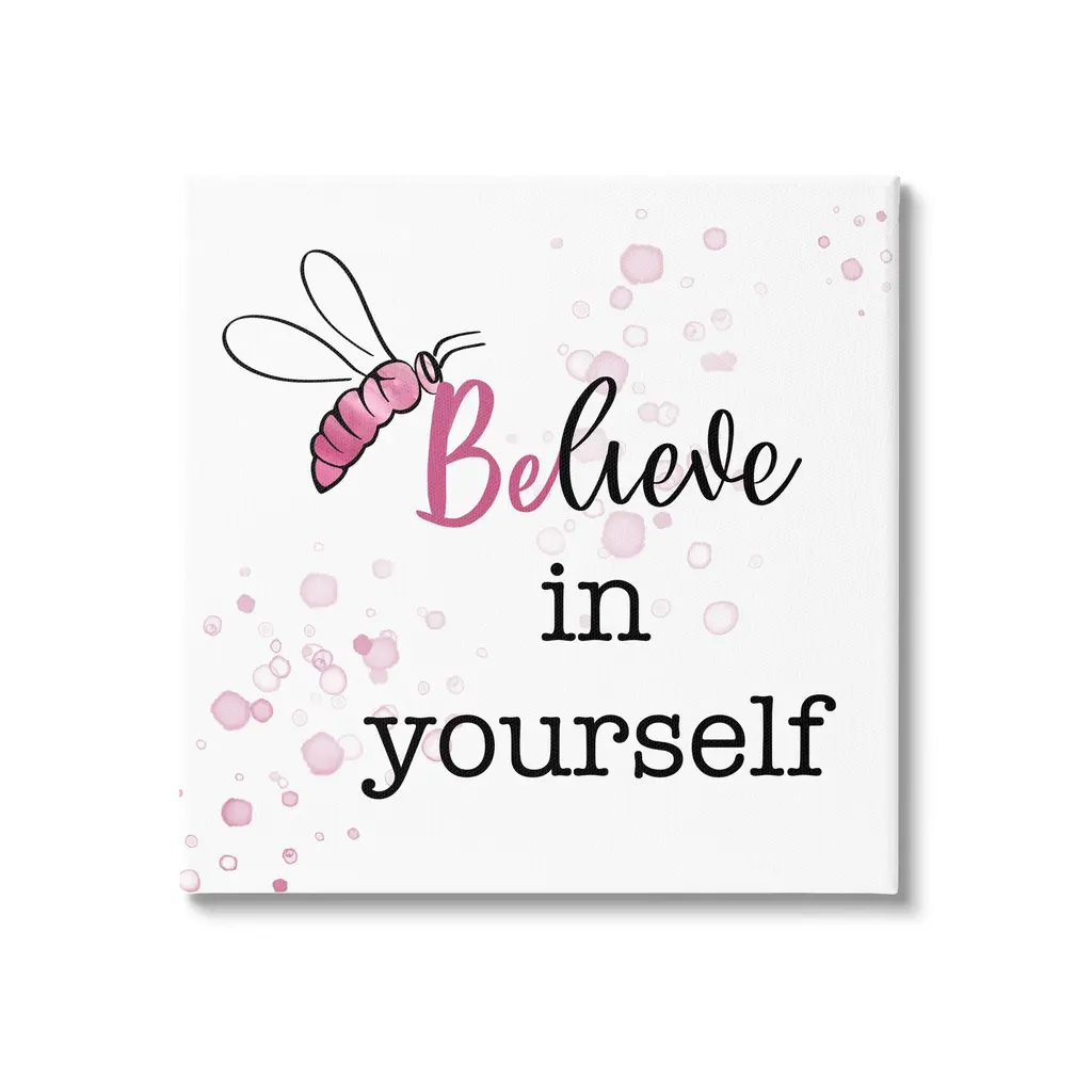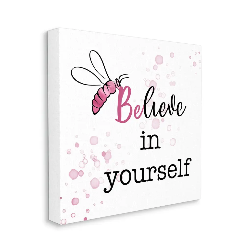 We create our stretched canvas to the highest standards. Using only the highest quality inks and canvas on Mimaki printers, we hand-cut and stretch each piece over a 1.5-inch thick wooden frame for hanging. As a result, the art comes ready to hang on the sturdy ledge with no installation required. Stupell Wall Art is made in the USA.Features: Dimensions: 17 x 1.5 x 17 InchesStretched Canvas Sizes Include Standard: 17 x 1.5 x 17 Large: 24 x 1.5 x 24 X-Large: 30 x 1.5 x 30 Oversized: 36 x 1.5 x 36Wall Art is Ready to Hang with Hardware Free Hanging. No installation required. For Easy Set Up Lean or Layer Artwork on Shelf or Against Wall.Our stretched canvas is created with the highest standards. We use only the highest quality inks and canvas on our in house Mimaki printers, and then hand cut and stretch each piece over a 1.5 inch thick wooden frame for hanging. Made In USA.Artwork Relates To: Animal, Bee, Insect, Invertebrate, Honey Bee, Modern, Purple, Believe in YourselfDesign by Amber Clarkson