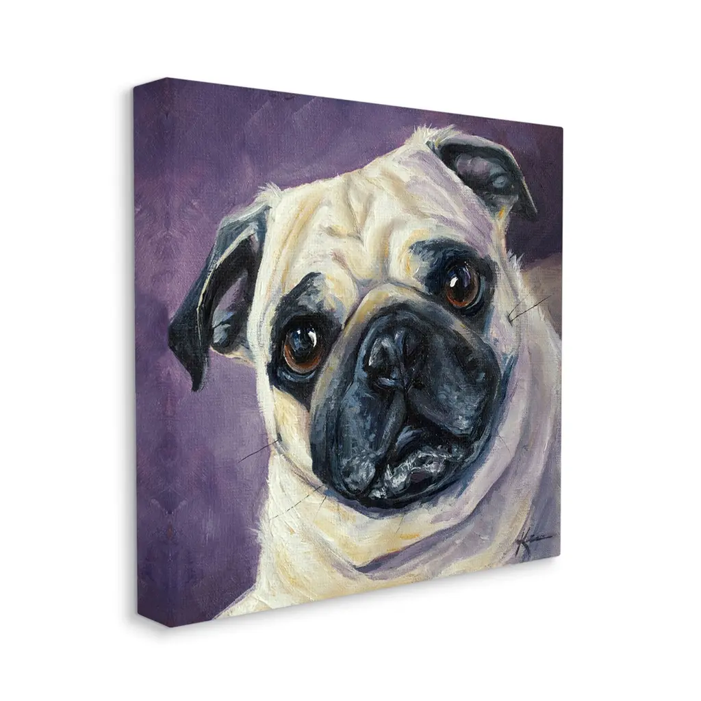 We create our stretched canvas to the highest standards. Using only the highest quality inks and canvas on Mimaki printers, we hand-cut and stretch each piece over a 1.5-inch thick wooden frame for hanging. As a result, the art comes ready to hang on the sturdy ledge with no installation required. Stupell Wall Art is made in the USA.Features: Dimensions: 17 x 1.5 x 17 InchesStretched Canvas Sizes Include Standard: 17 x 1.5 x 17 Large: 24 x 1.5 x 24 X-Large: 30 x 1.5 x 30 Oversized: 36 x 1.5 x 36Wall Art is Ready to Hang - No Installation or Hardware Needed. For Easy Set Up Lean or Layer Artwork on Shelf or Against Wall.Our stretched canvas is created with the highest standards. We use only the highest quality inks and canvas on our in house Mimaki printers, and then hand cut and stretch each piece over a 1.5 inch thick wooden frame for hanging. Made In USA.Artwork Relates To: Animal, Canine, Dog, Mammal, Pet, Painting, PugDesign by Lindsay Kivi Fine Art
