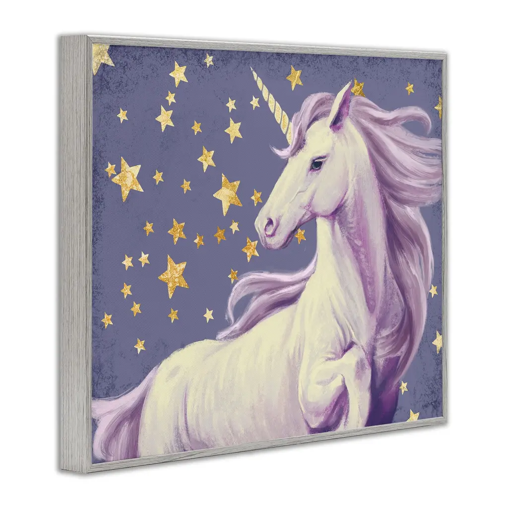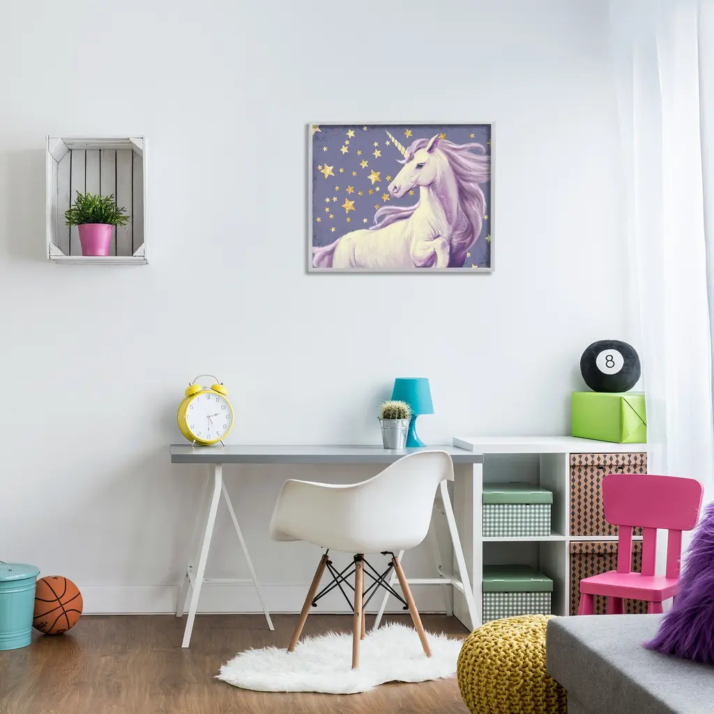 Stupell Purple Unicorn In Starry Night Sky Space Fantasy Framed Wall Art - 24 X 30 - Grey