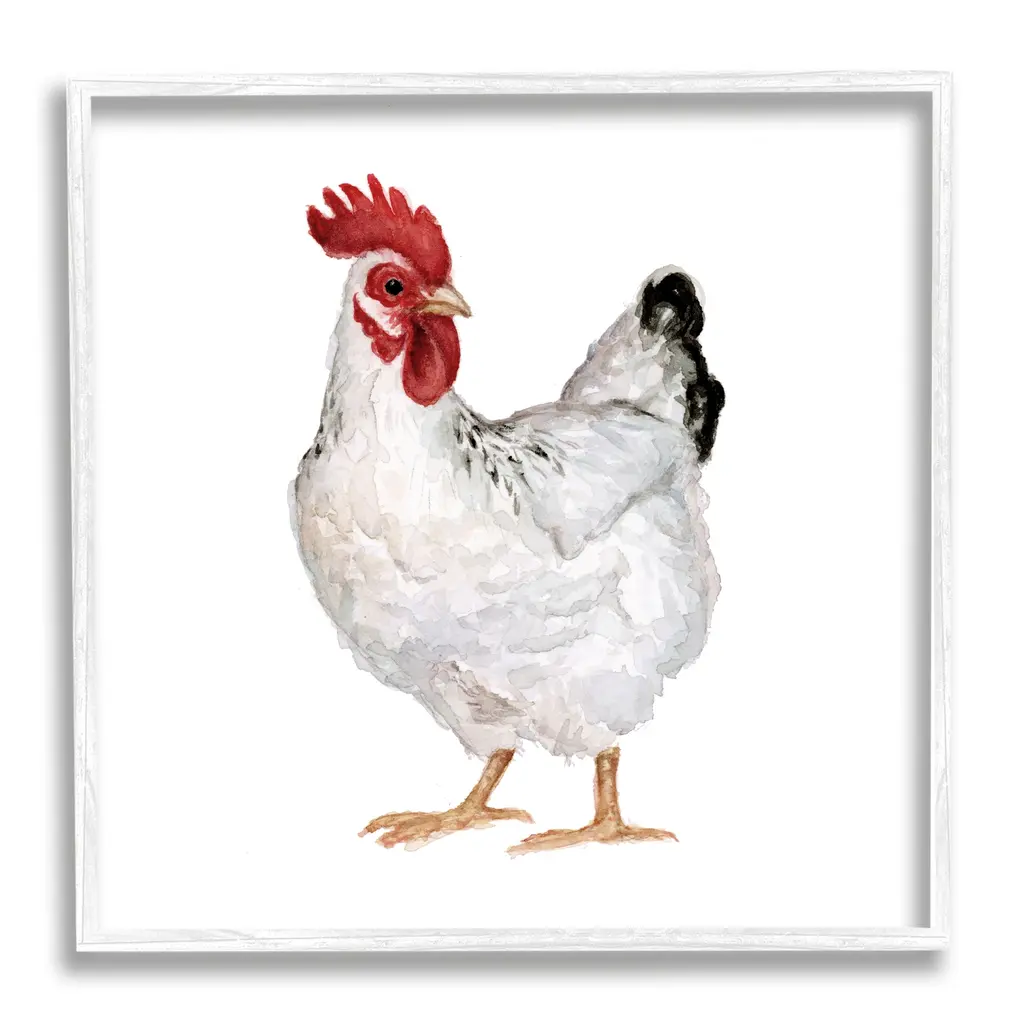Stupell Quaint Chicken Watercolor Painting Farm Hen Portrait Framed Wall Art - White - 24 X 24 - Grey