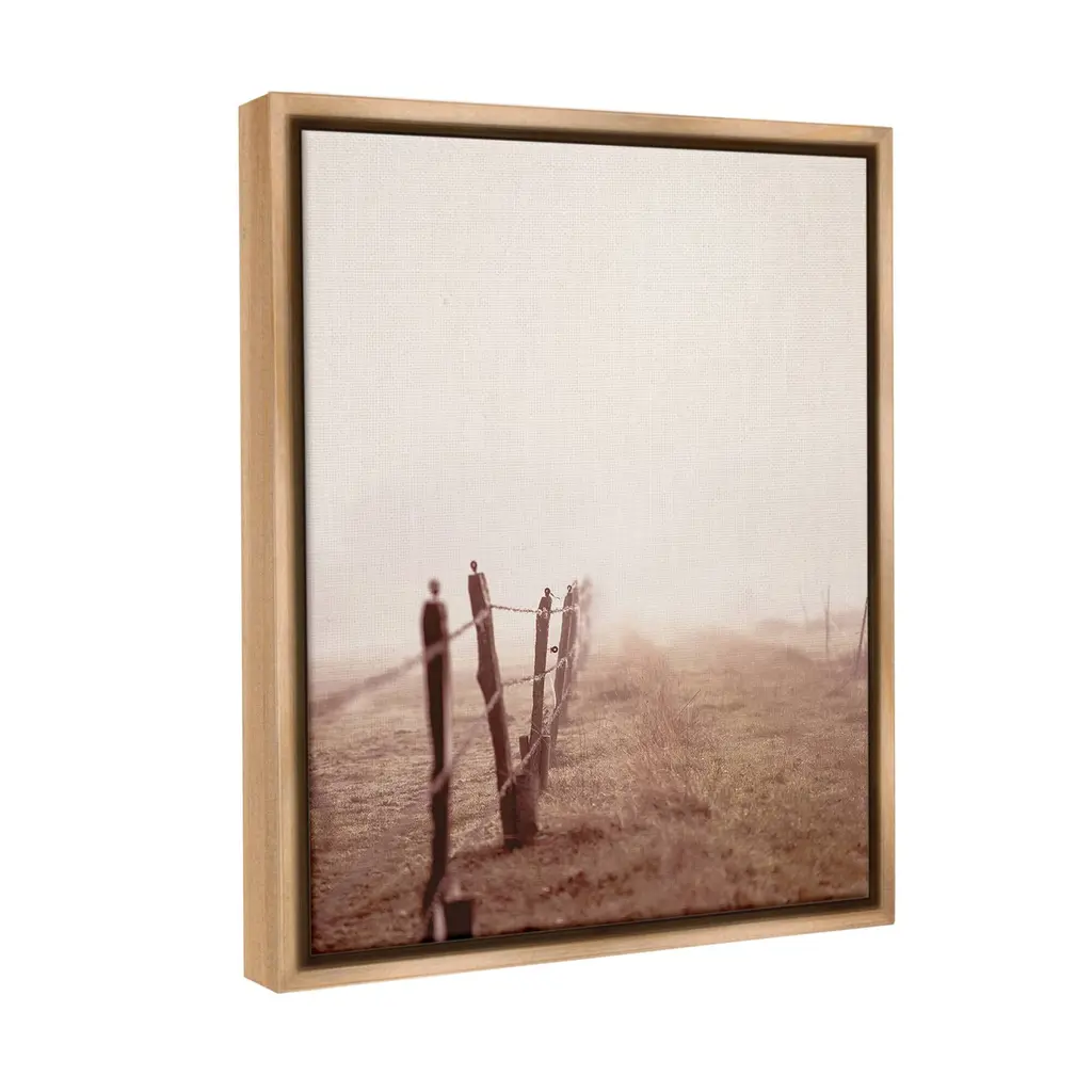Elevate your home or office to the next level with Stupell Framed Floating Canvas Wall Art. Our premium hand-stretched canvas is mounted securely into a sturdy lightweight frame. The museum-style gap between the wrapped canvas and the box frame gives the illusion of floating artwork. Stupell Wall Art is made in the USA.Features: Dimensions: 17 x 1.7 x 21 Frame, 16 x 1.5 x 20 Canvas ArtFloating Frame Canvas Products are available in sizes 17"x21" and 25"x31". All Floating Frame Canvas Products have a 1.7" Depth.Wall Art is Ready to Hang with Hardware Free Hanging. No Installation required. For Easy Set Up Lean or Layer Artwork on Shelf or Against Wall. Artwork is Permently Fixed into the Frame.Our elevated 1.7" Thick Floating Frame is the perfect complement to our canvas style Wall Art. We use only the highest quality inks in house with industry leading printing solutions. Canvas is hand stretched over a durable wood foundation and then mounted securly into a Modern Box Frame. Made in the USA.Artwork Relates To: Nature, Landscape, Country, Farm, Sepia, Photography, Fence, FogDesign by Leah Straatsma