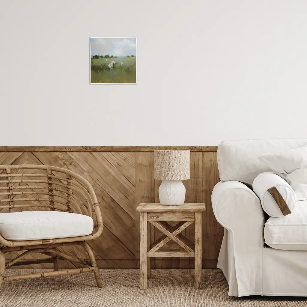 Our wall plaques start as high-quality lithograph prints mounted on durable 0.5-inch thick MDF wood. Each piece is hand finished and comes with a fresh layer of white foil on the sides to give it a crisp, clean look. Plaques arrive ready to hang without installation and come with removable plastic corners to keep them from damage in transit. Stupell Wall Art is made in the USA.Features: Dimensions: 12 x 0.5 x 12 InchesWall Art is Ready to Hang with Hardware Free Hanging. No installation required. For Easy Set Up Lean or Layer Artwork on Shelf or Against Wall.All of our wall plaques start off as high quality lithograph prints that are then mounted on durable 0.5 inch thick MDF wood. Each piece is hand finished and comes with a fresh layer of foil on the sides to give it a crisp clean look. Made In USA.Artwork Relates To: Landscape, Nature, Animal, Farm, Country, SheepDesign by Julia Purinton
