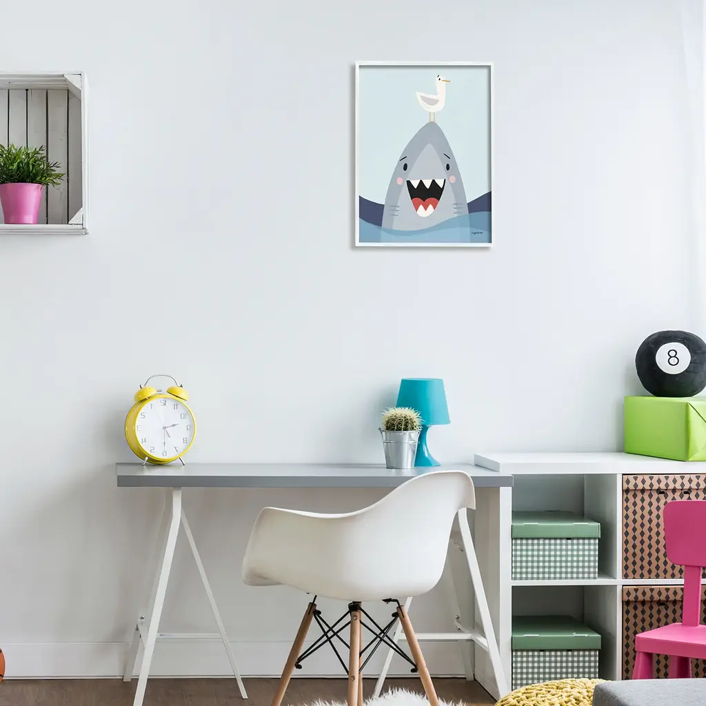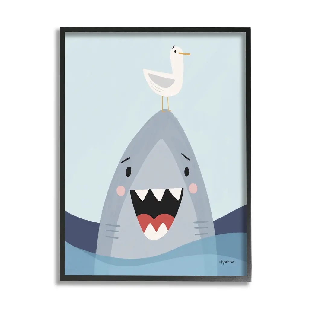 Stupell Quirky Smiling Shark Seagull Nautical Ocean Waves Framed Wall Art - Grey - 11 X 14 - Black