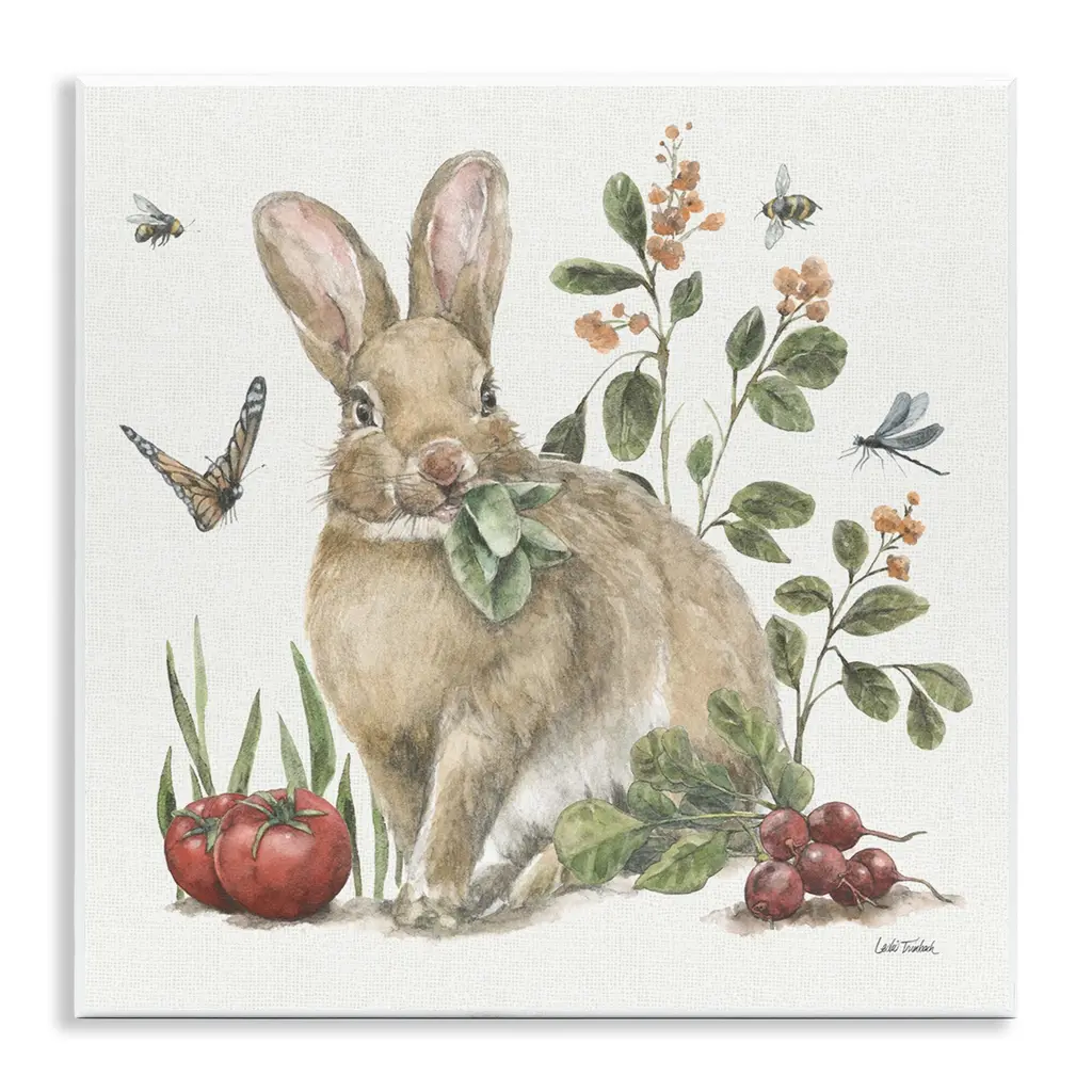 Our wall plaques start as high-quality lithograph prints mounted on durable 0.5-inch thick MDF wood. Each piece is hand finished and comes with a fresh layer of white foil on the sides to give it a crisp, clean look. Plaques arrive ready to hang without installation and come with removable plastic corners to keep them from damage in transit. Stupell Wall Art is made in the USA.Features: Dimensions: 12 x 0.5 x 12 InchesWall Art is Ready to Hang with Hardware Free Hanging. No installation required. For Easy Set Up Lean or Layer Artwork on Shelf or Against Wall.All of our wall plaques start off as high quality lithograph prints that are then mounted on durable 0.5 inch thick MDF wood. Each piece is hand finished and comes with a fresh layer of foil on the sides to give it a crisp clean look. Made In USA.Artwork Relates To: Animal, Bee, Honey Bee, Insect, Invertebrate, Mammal, Rabbit, Butterfly, Gardening, Flower, FloralDesign by Leslie Trimbach