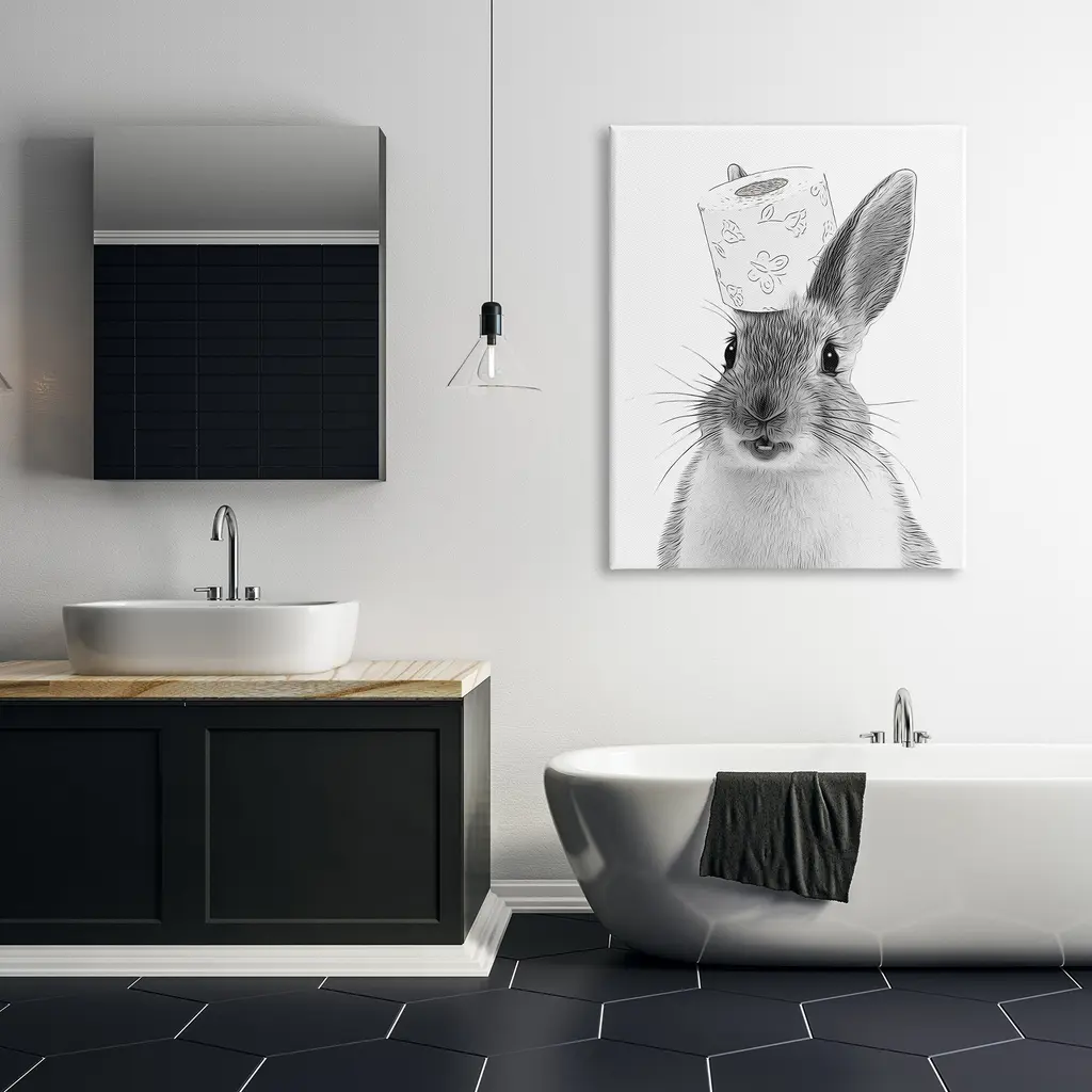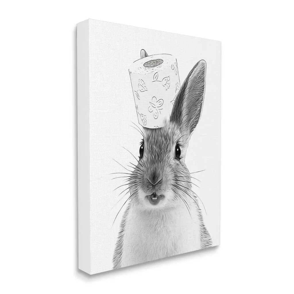 Stupell Rabbit & Toilet Paper Bathroom Canvas Wall Art By Annalisa Latella - 36 X 48