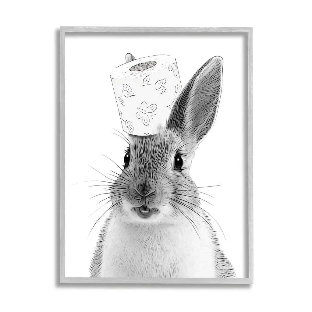 Add dimension to any room with our textured Framed Giclee Artwork. Our framed artwork is securely mounted into a 1.5-inch thick wood grain frame and ready to hang. Frames are available in three alluring styles: black, gray farmhouse and white. In addition, you should check out our oversized options if you want a statement piece. Stupell Wall Art is made in the USA.Features: Dimensions: 11 x 1.5 x 14 FramedFramed Giclee Sizes Include Standard: 11 x 1.5 x 14 Large: 16 x 1.5 x 20 Oversized: 24 x 1.5 x 30Wall Art is Ready to Hang - No Installation or Hardware Needed. For Easy Set Up Lean or Layer Artwork on Shelf or Against Wall.Our giclée prints are carefully mounted on a durable MDF backing, and then perfectly finished in a 1.5 inch thick woodgrain frame. Mounted frame colors include black, gray farmhouse and white. Made In USA.Artwork Relates To: Animal, Mammal, Wildlife, Bathroom, Rabbit, BunnyDesign by Annalisa Latella