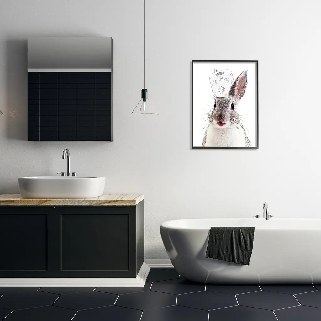 Add dimension to any room with our textured Framed Giclee Artwork. Our framed artwork is securely mounted into a 1.5-inch thick wood grain frame and ready to hang. Frames are available in three alluring styles: black, gray farmhouse and white. In addition, you should check out our oversized options if you want a statement piece. Stupell Wall Art is made in the USA.Features: Dimensions: 11 x 1.5 x 14 FramedFramed Giclee Sizes Include Standard: 11 x 1.5 x 14 Large: 16 x 1.5 x 20 Oversized: 24 x 1.5 x 30Wall Art is Ready to Hang - No Installation or Hardware Needed. For Easy Set Up Lean or Layer Artwork on Shelf or Against Wall.Our giclée prints are carefully mounted on a durable MDF backing, and then perfectly finished in a 1.5 inch thick woodgrain frame. Mounted frame colors include black, gray farmhouse and white. Made In USA.Artwork Relates To: Animal, Mammal, Wildlife, Bathroom, Rabbit, BunnyDesign by Annalisa Latella