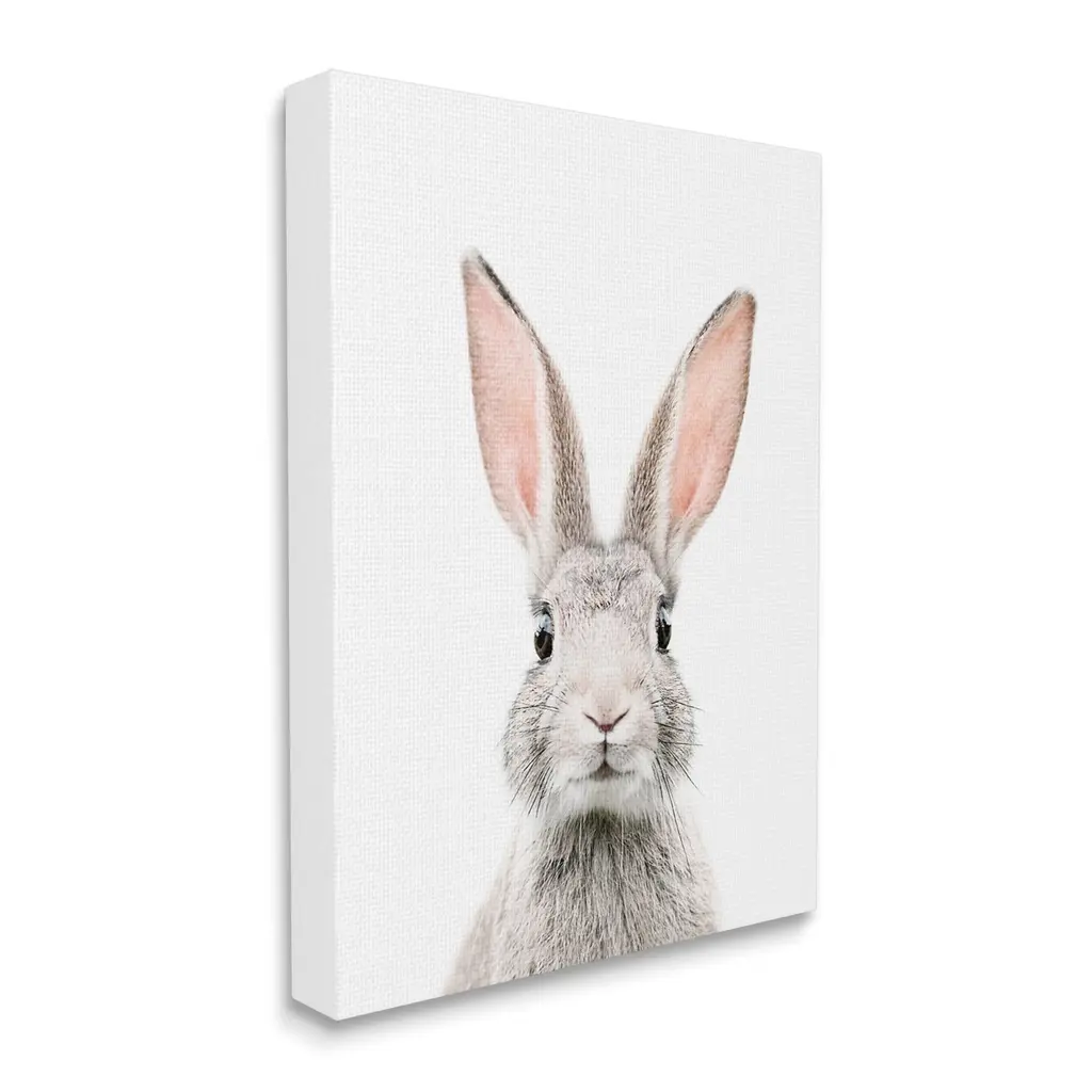 We create our stretched canvas to the highest standards. Using only the highest quality inks and canvas on Mimaki printers, we hand-cut and stretch each piece over a 1.5-inch thick wooden frame for hanging. As a result, the art comes ready to hang on the sturdy ledge with no installation required. Stupell Wall Art is made in the USA.Features: Dimensions: 16 x 1.5 x 20 InchesStretched Canvas Sizes Include Standard: 16 x 1.5 x 20 Large: 20 x 1.5 x 30 X-Large: 30 x 1.5 x 40 Oversized: 36 x 1.5 x 48Wall Art is Ready to Hang with Hardware Free Hanging. No installation required. For Easy Set Up Lean or Layer Artwork on Shelf or Against Wall.Our stretched canvas is created with the highest standards. We use only the highest quality inks and canvas on our in house Mimaki printers, and then hand cut and stretch each piece over a 1.5 inch thick wooden frame for hanging. Made In USA.Artwork Relates To: Animal, Mammal, Wildlife, Rabbit, BunnyDesign by Sisi and Seb